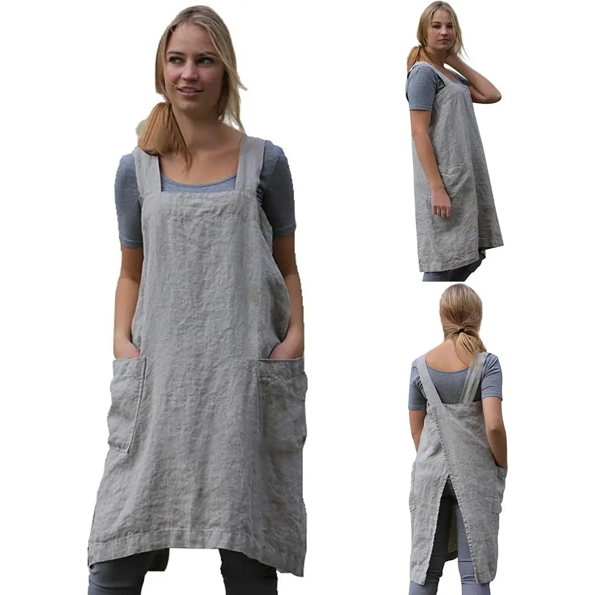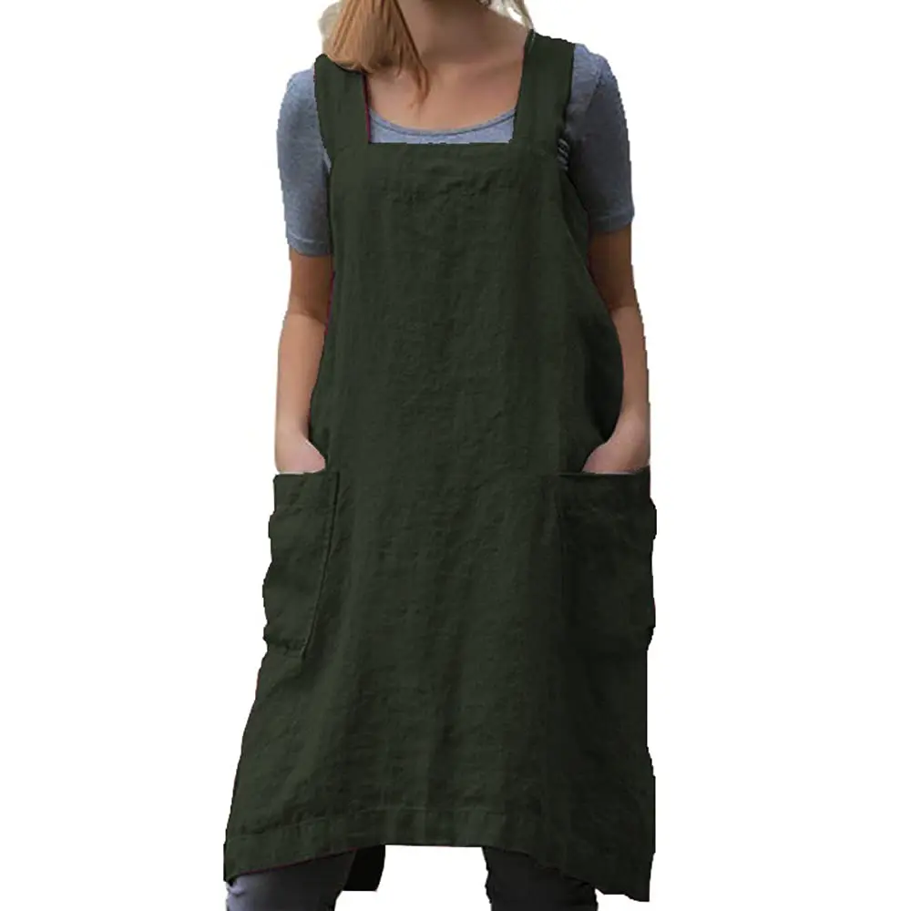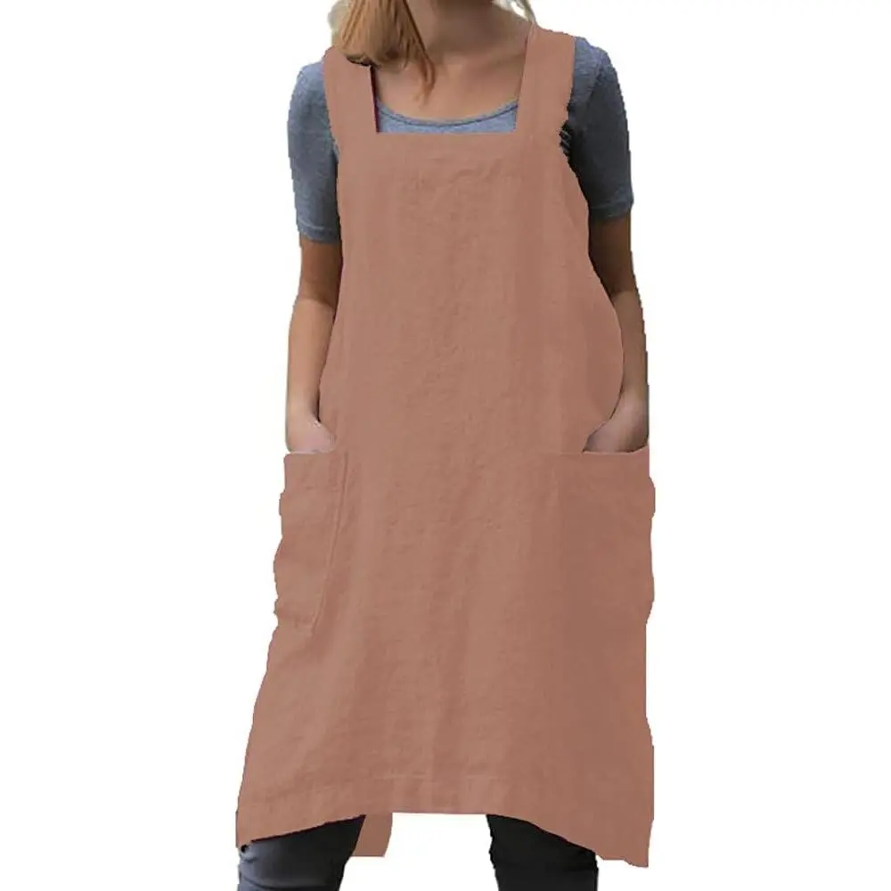 Cotton Linen Apron Cross Back Apron for Women with Pockets Pinafore Dress for Baking Cooking Gardening Work