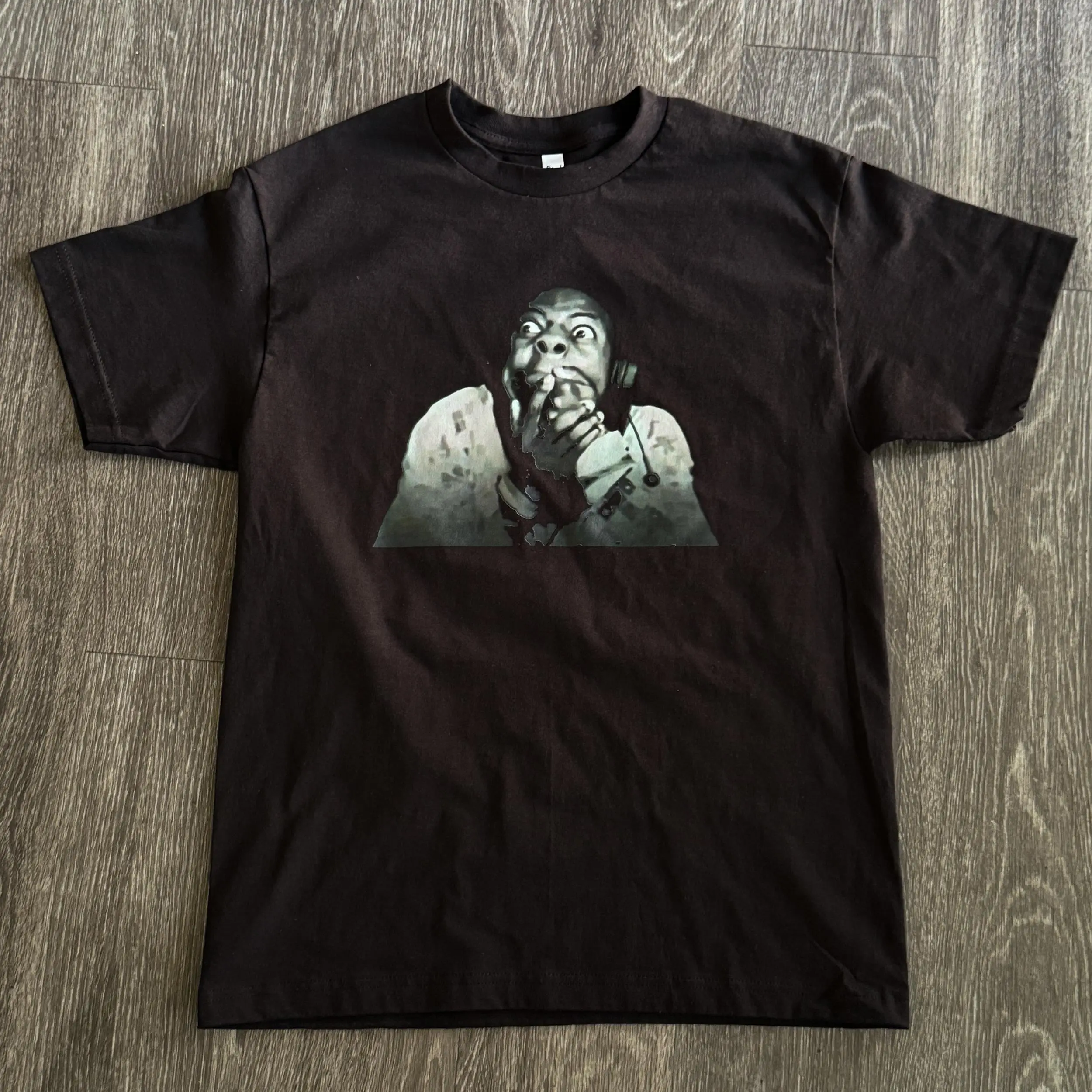 The design features the iconic "shocked face" meme that's gone viral overseas, using a vintage filter effect to reproduce the character's wide-eyed, mouth-covered, astonished expression.Paired with a dark brown background, it creates a vintage feel.It's not only a conversation starter for everyday outings and gatherings with friends, but also a unique item for American retro and street style outfits, easily attracting the sympathy of fellow fans and generating endless moments of laughter