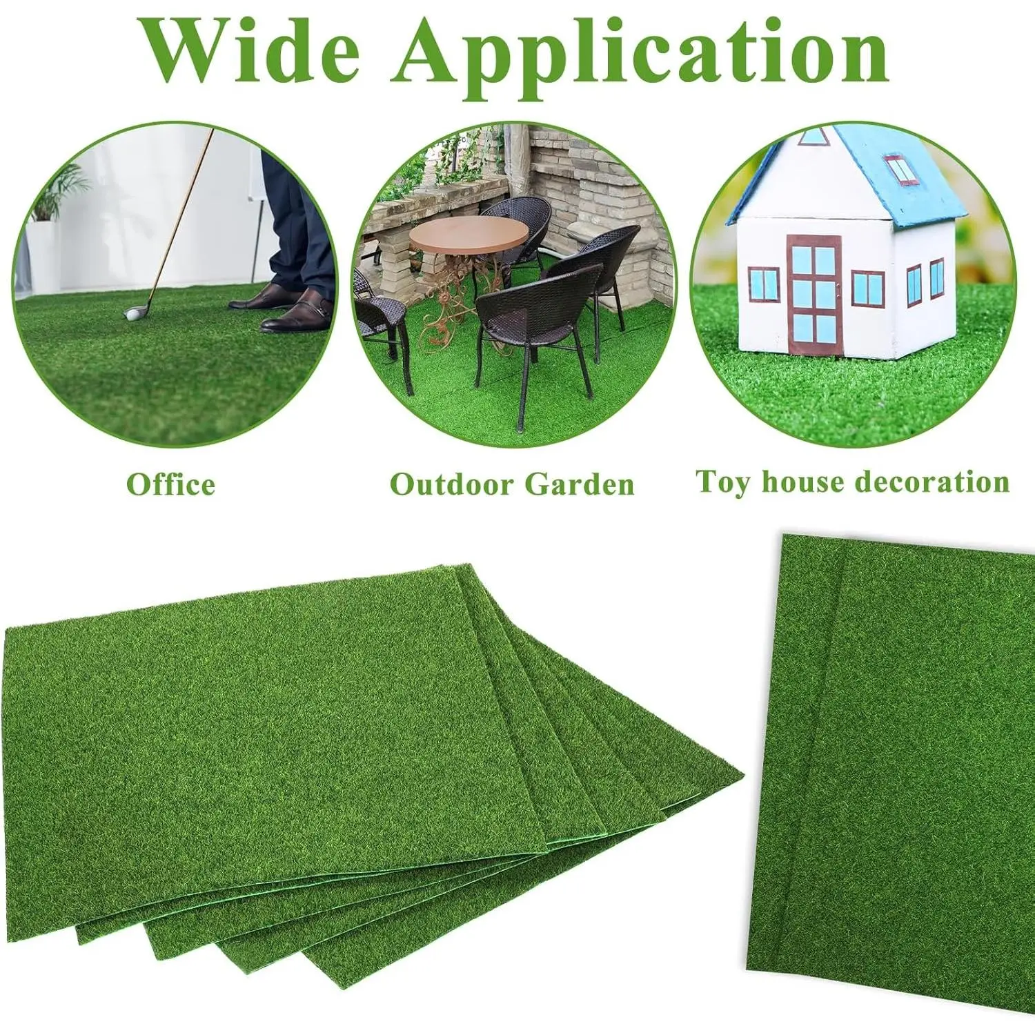 Small Artificial Grass Turf: You will receive 10 pcs of fake grass mats measures 30*30 cm/11.8*11.8 inches, suitable for indoor and outdoor useHigh Quality Material: Artificial turf is made of durable green plastic and non-woven backing, realistic appearance, can be used for a long timeEasy to Clean: Artificial turf can be rinsed with water and air dried, making it very easy to clean and low maintenanceConvenient Use: Micro landscape lawns are easy to put together and take down.Use carpet tape to hold them in place to create a garden in your dollhouseWide Application: Artificial garden grass can be used in micro landscapes, glass containers, doll house and any other places as DIY landscape decoration