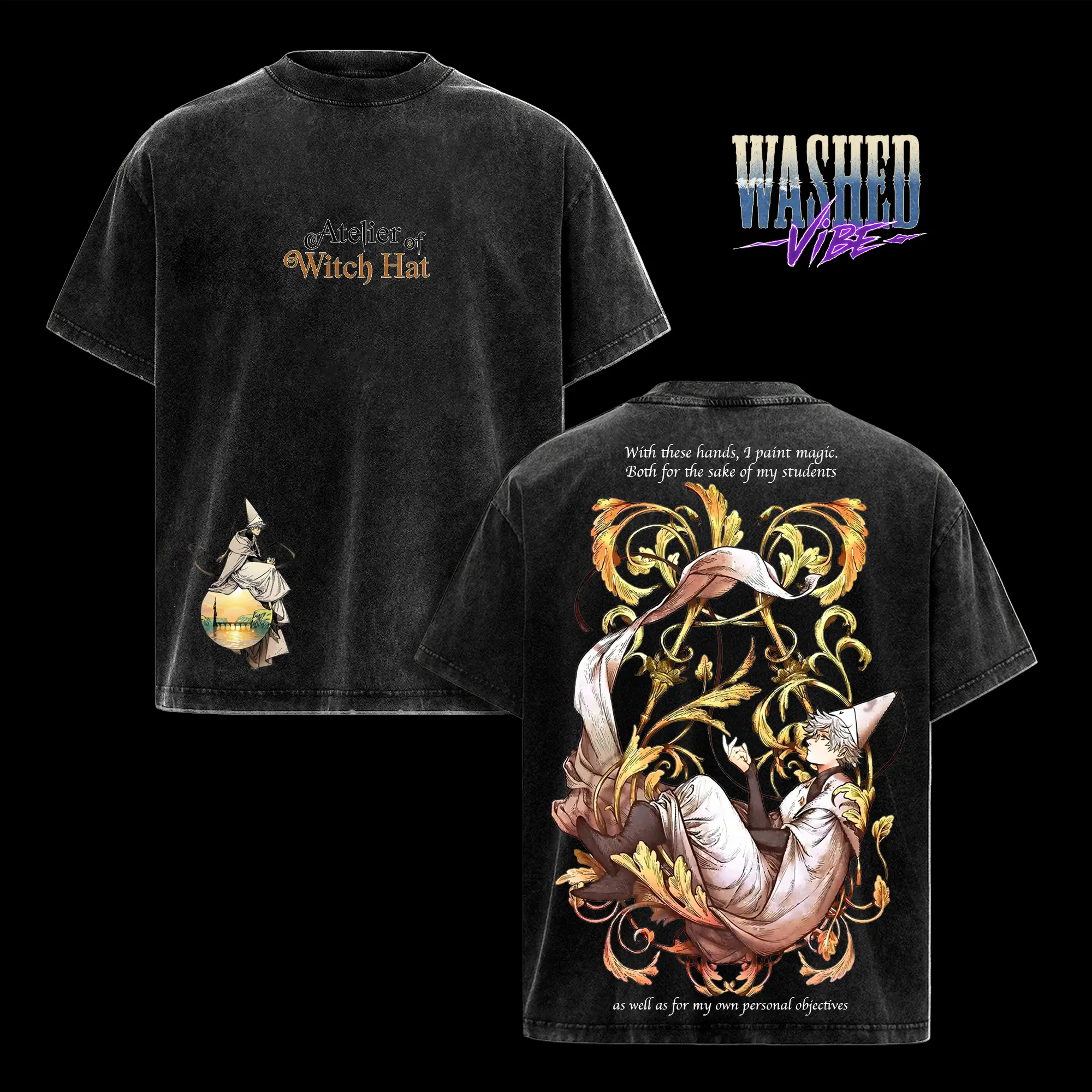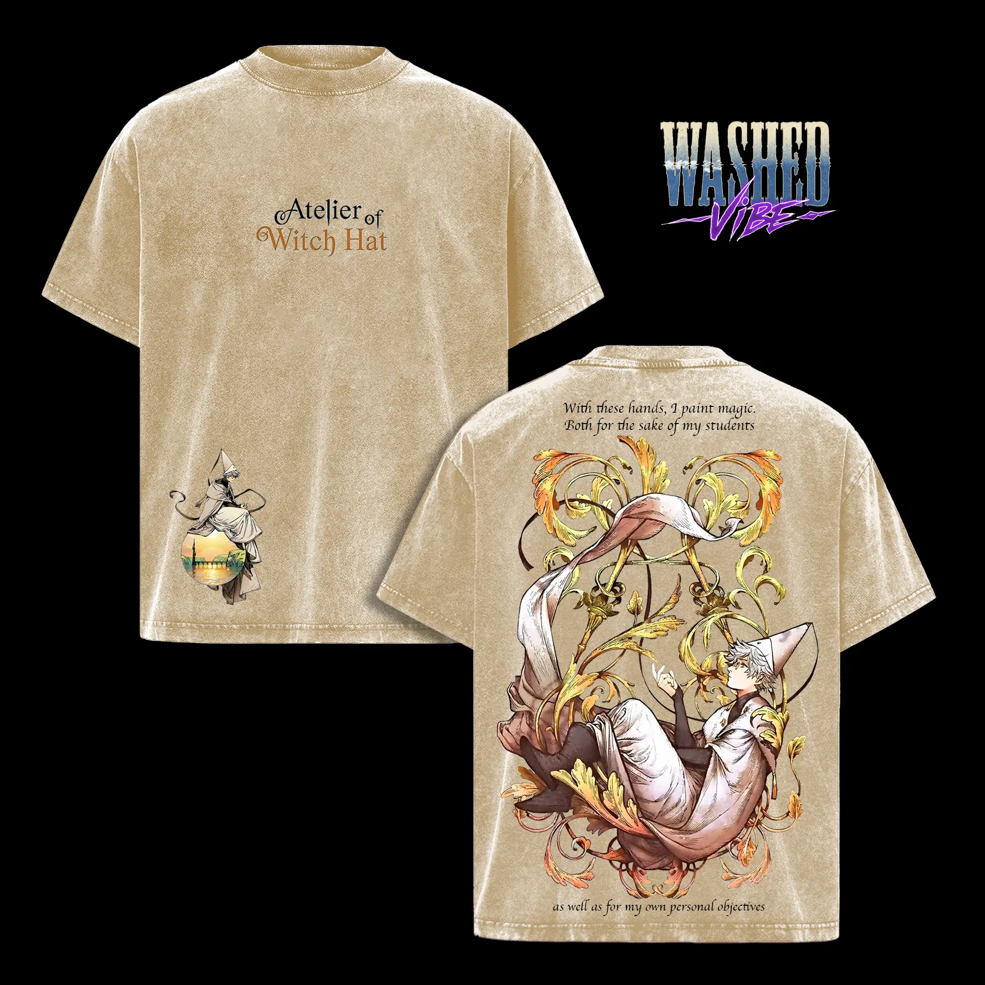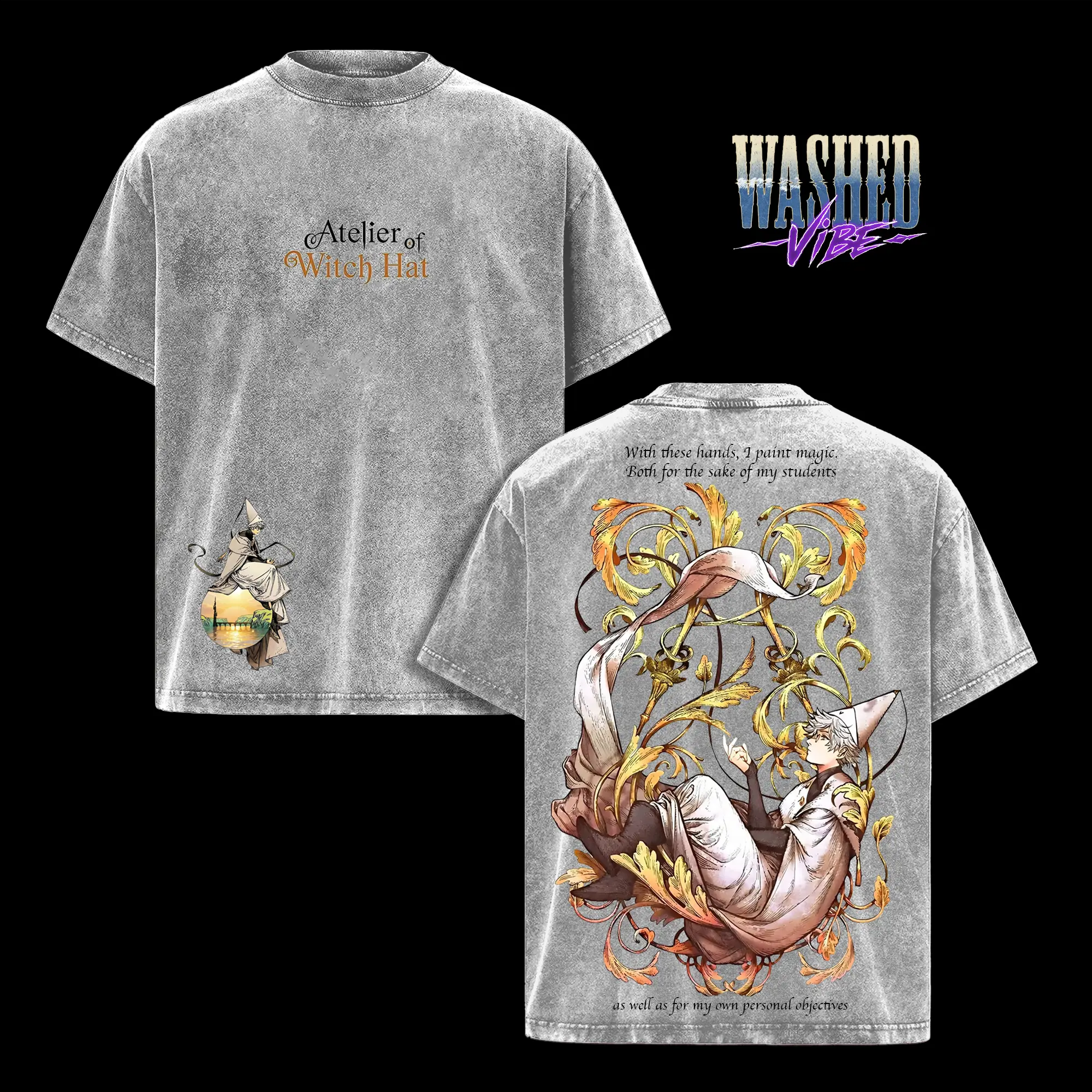 Retro Heavy Limited Vintage Qifrey - Witch Hat Atelier Washed Oversized Graphic Tee - Unisex T-shirt - Hoodie, WHA Double Printed T-Shirt, Heavyweight Cotton Unisex Streetwear Top, Gym Pump Cover, Summers Outfits, Gift for Anime Fans