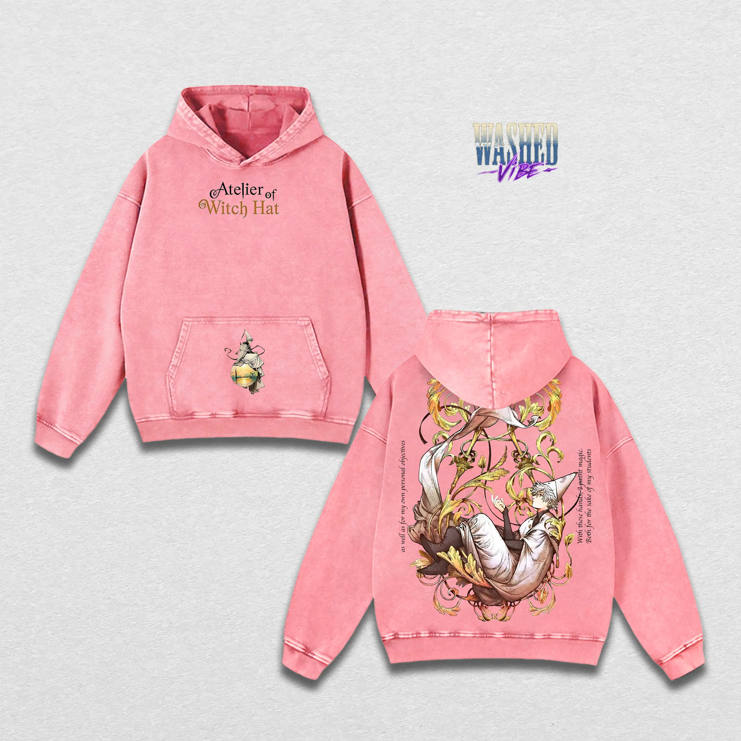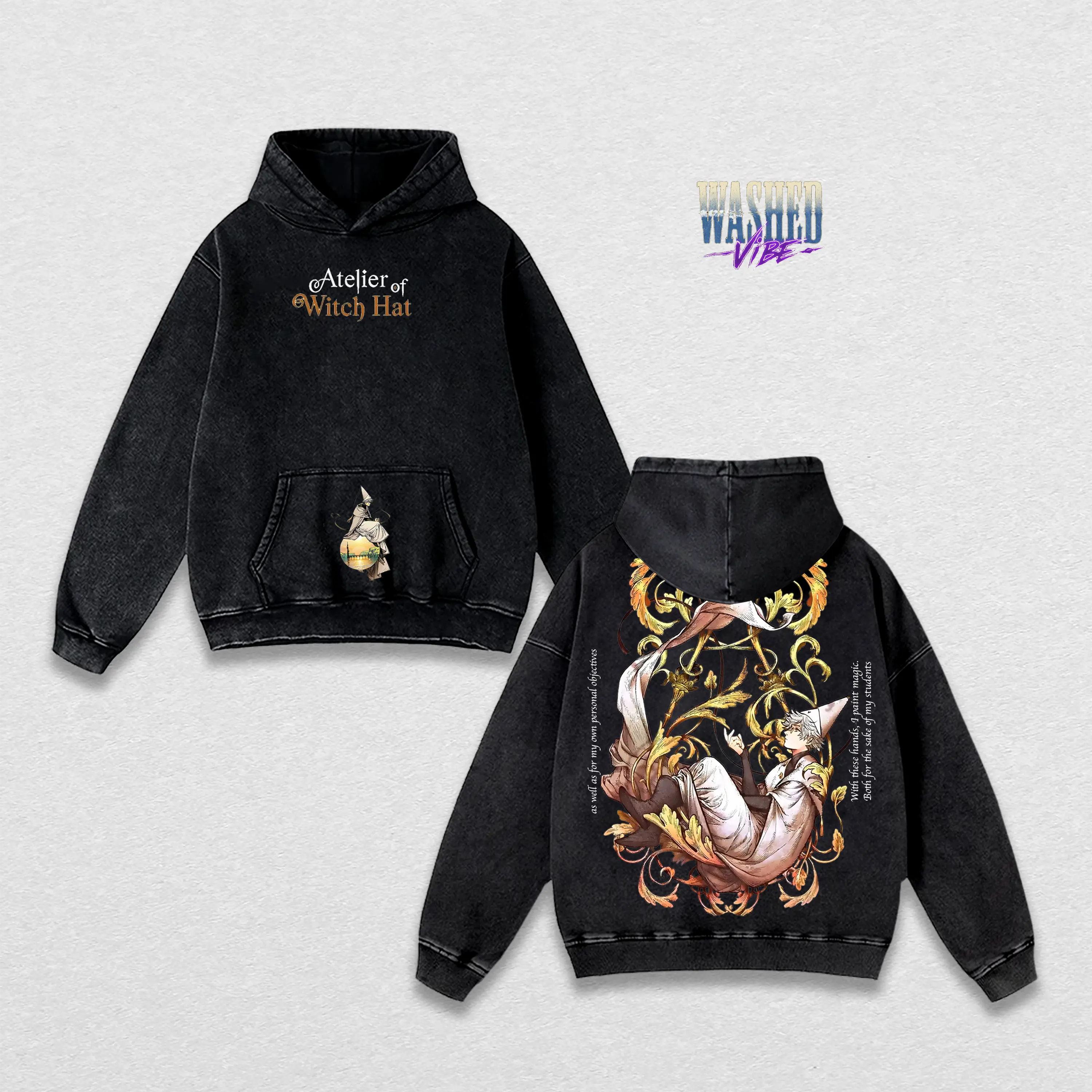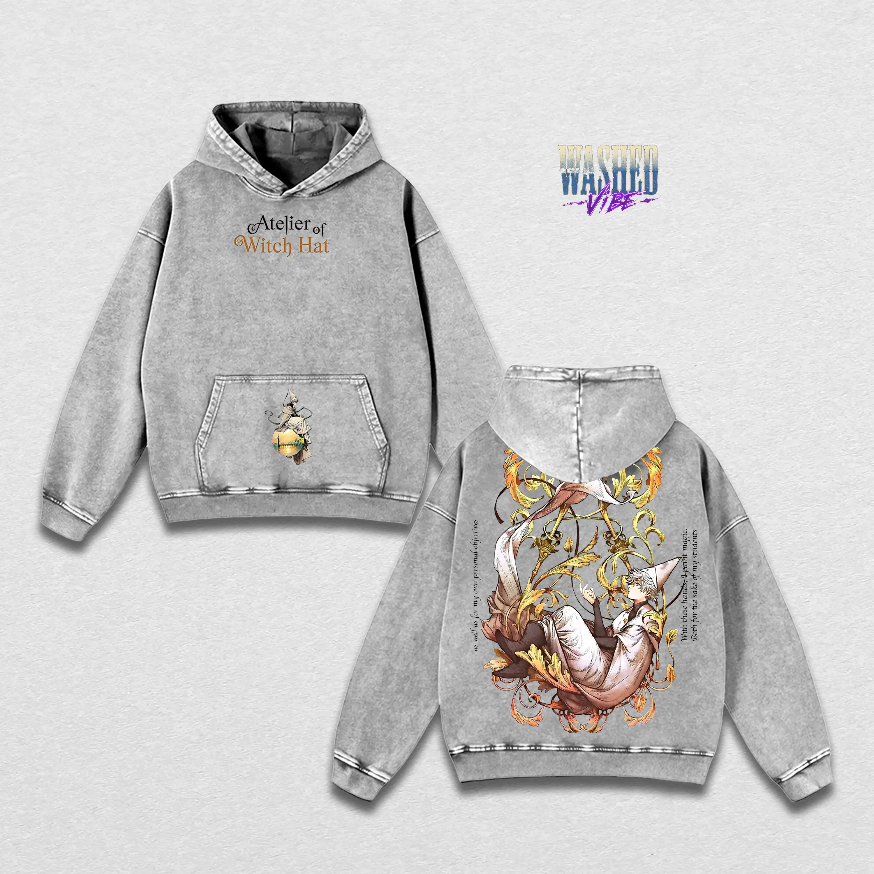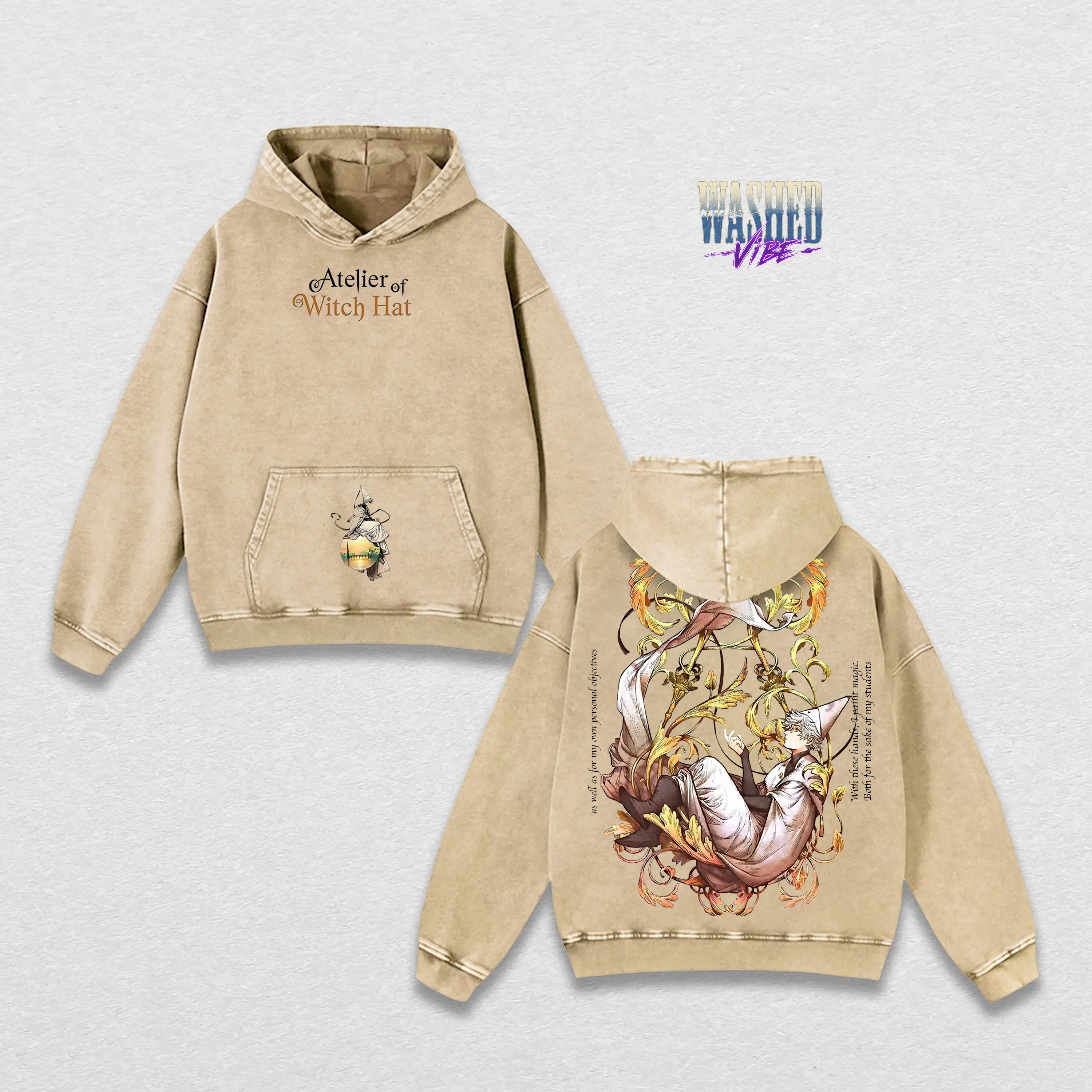 Retro Heavy Limited Vintage Qifrey - Witch Hat Atelier Washed Oversized Graphic Tee - Unisex T-shirt - Hoodie, WHA Double Printed T-Shirt, Heavyweight Cotton Unisex Streetwear Top, Gym Pump Cover, Summers Outfits, Gift for Anime Fans