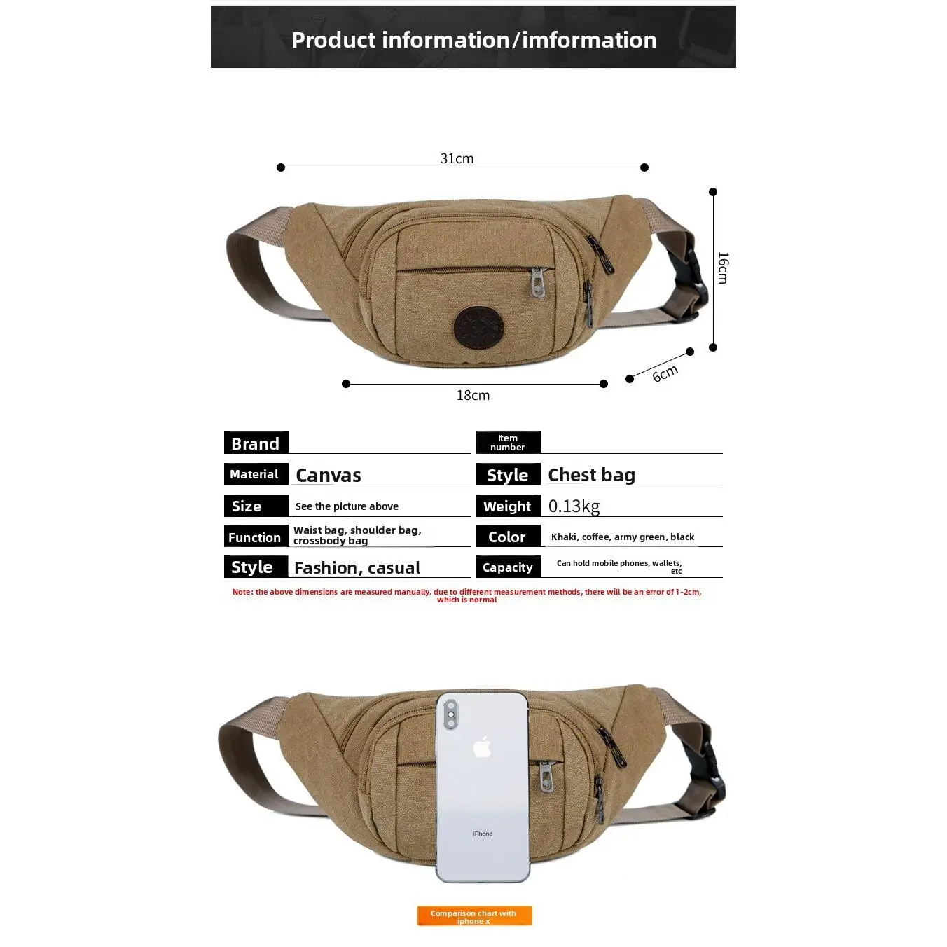 Elevate your daily carry with this durable canvas waist pack, designed for style, convenience, and rugged versatility. Crafted from premium, tear-resistant canvas fabric, it offers long-lasting durability while maintaining a lightweight, comfortable feel. The adjustable, quick-release buckle strap ensures a secure, customizable fit for all body types, perfect for wearing around the waist or crossbody. Multiple zippered compartments provide ample, organized storage for your phone, wallet, keys, and other essentials, keeping your belongings secure and easily accessible. Available in a range of classic earthy tones, this timeless fanny pack blends rugged durability with modern casual design, making it ideal for travel, hiking, daily commuting, and outdoor adventures.