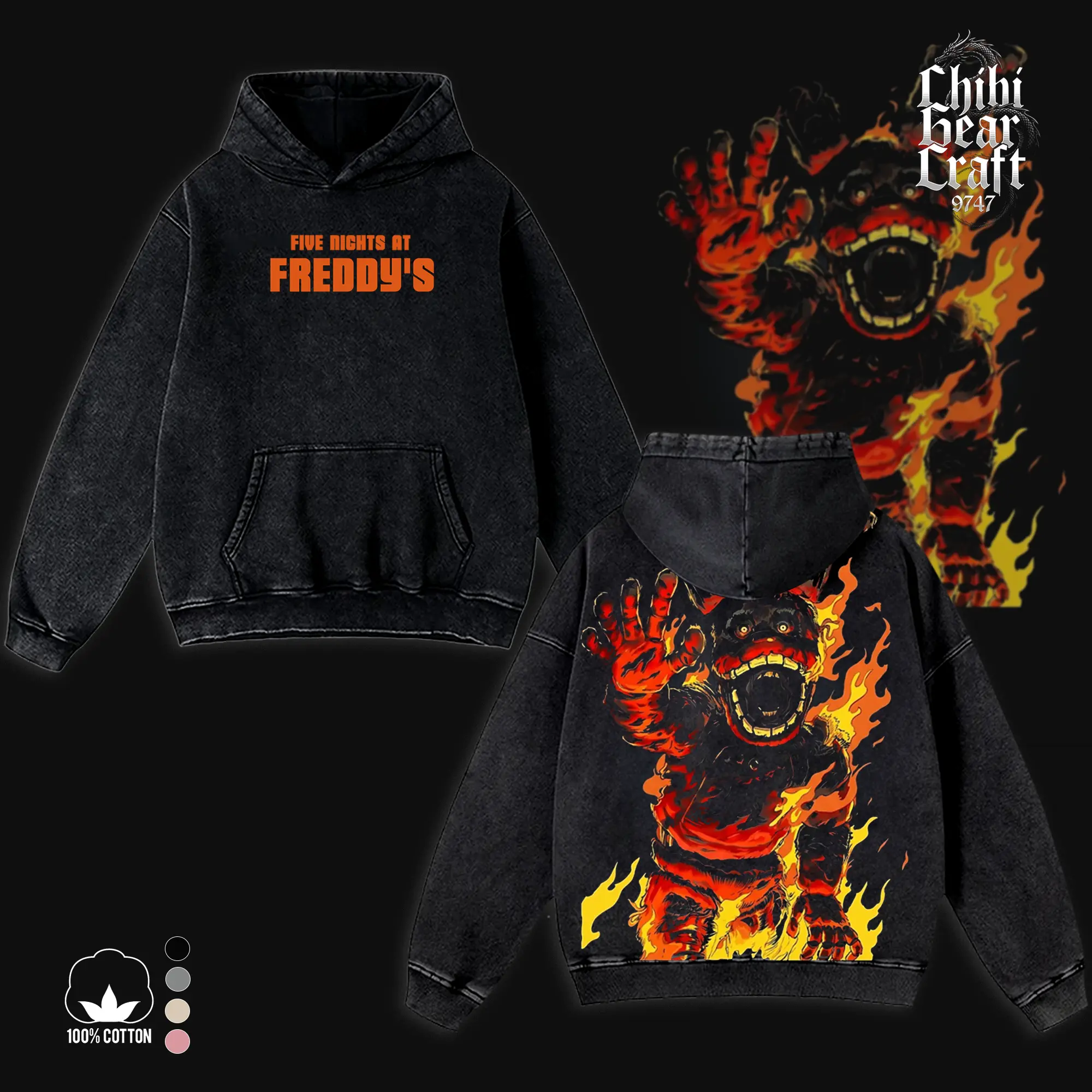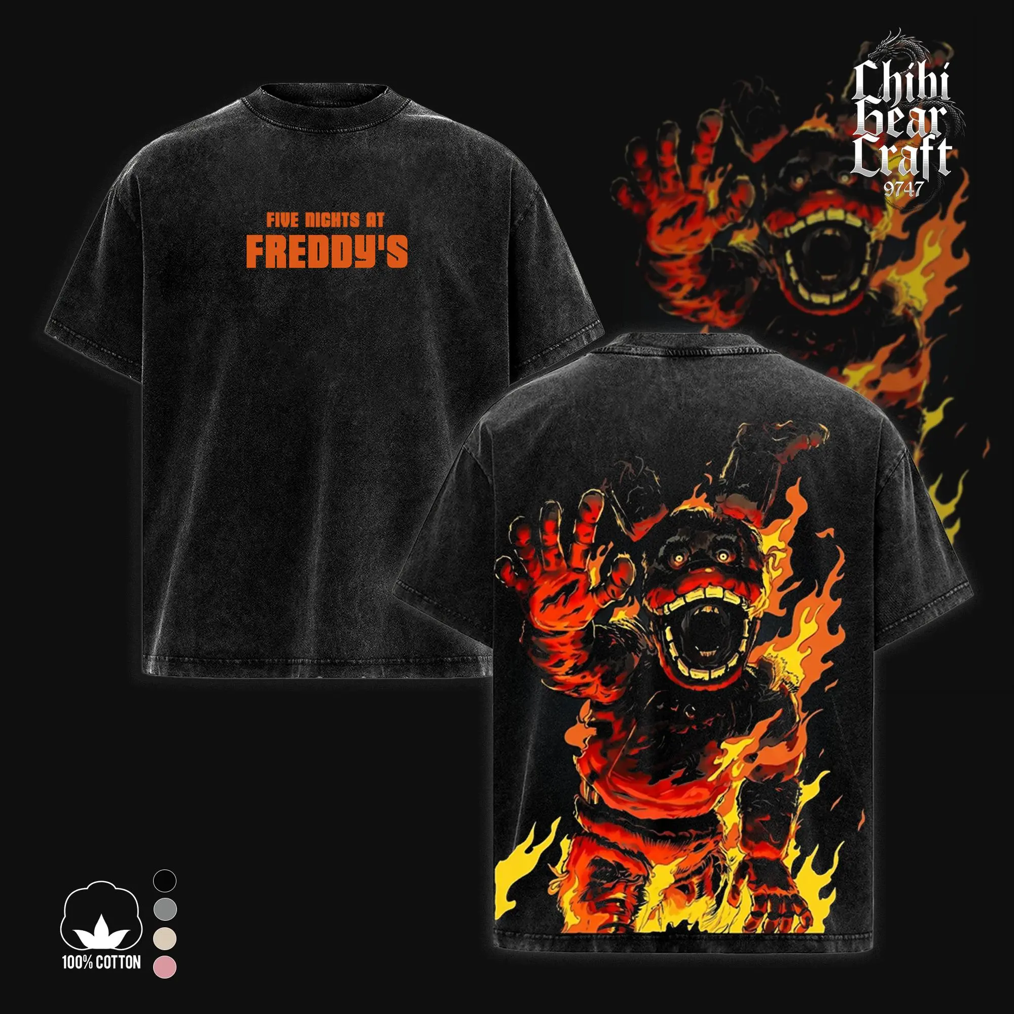 Five Nights at Freddy's Washed T-Shirt & Hoodie - Vintage Horror Video Games Graphic Tees, Springtrap Fire Design, Emo Affliction Streetwear Clothes, New York Style Menswear Outfit Gift for Game Fan