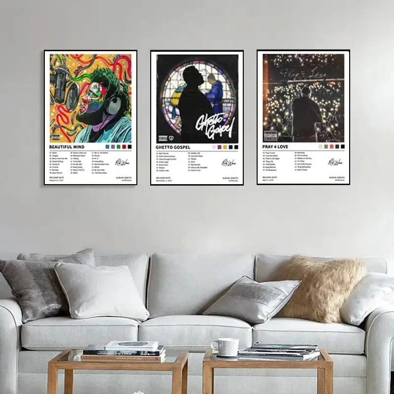 Rod Wave/Beautiful Mind/Ghetto Gospel/Pray 4 Love, Song Art, Living Room Gift, Music Lovers, Wall Art Set, Suitable for Living Room, Bedroom, Office, Printed Artwork, Frameless