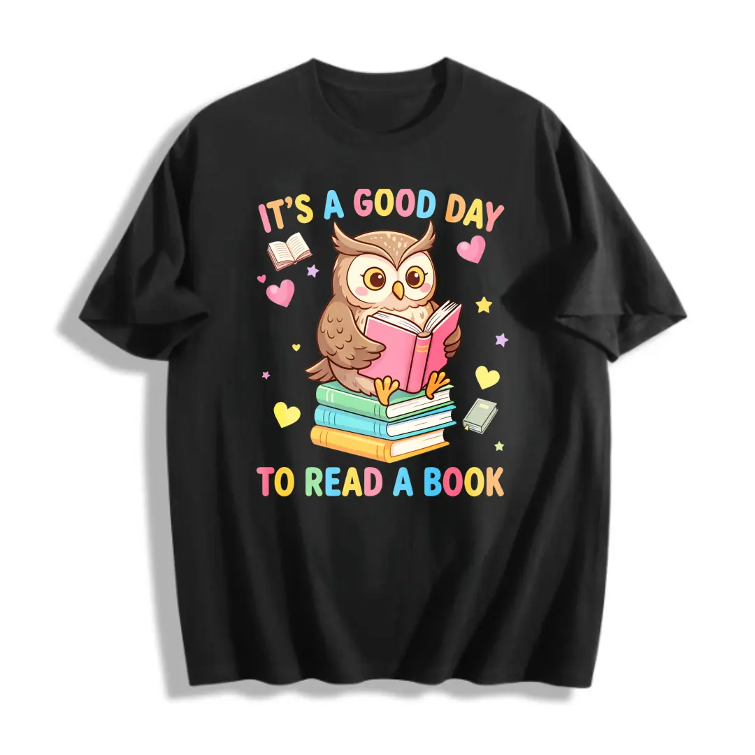 Cute Owl Reading Books Graphic Tee 100 Cotton Men’s T-Shirt S-5XL Plus Size Summer Casual Wear For Book Lovers Readers Teachers Perfect Gift For Bookworms Students