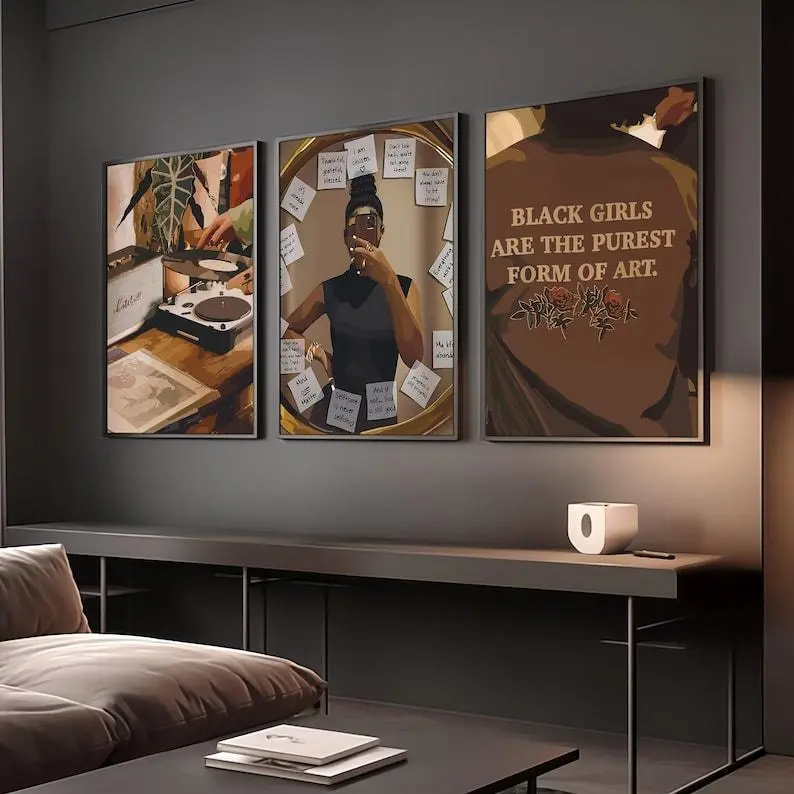 5. 3 Count/set Black Girl Wall Art, Black Woman Affirmation Prints, Black Girl Room Decor, Black Woman Art, Printable Home Decor Photo Poster wall decor Artwork Hand unframed wall art decor Tape Ornaments Unframed Poster