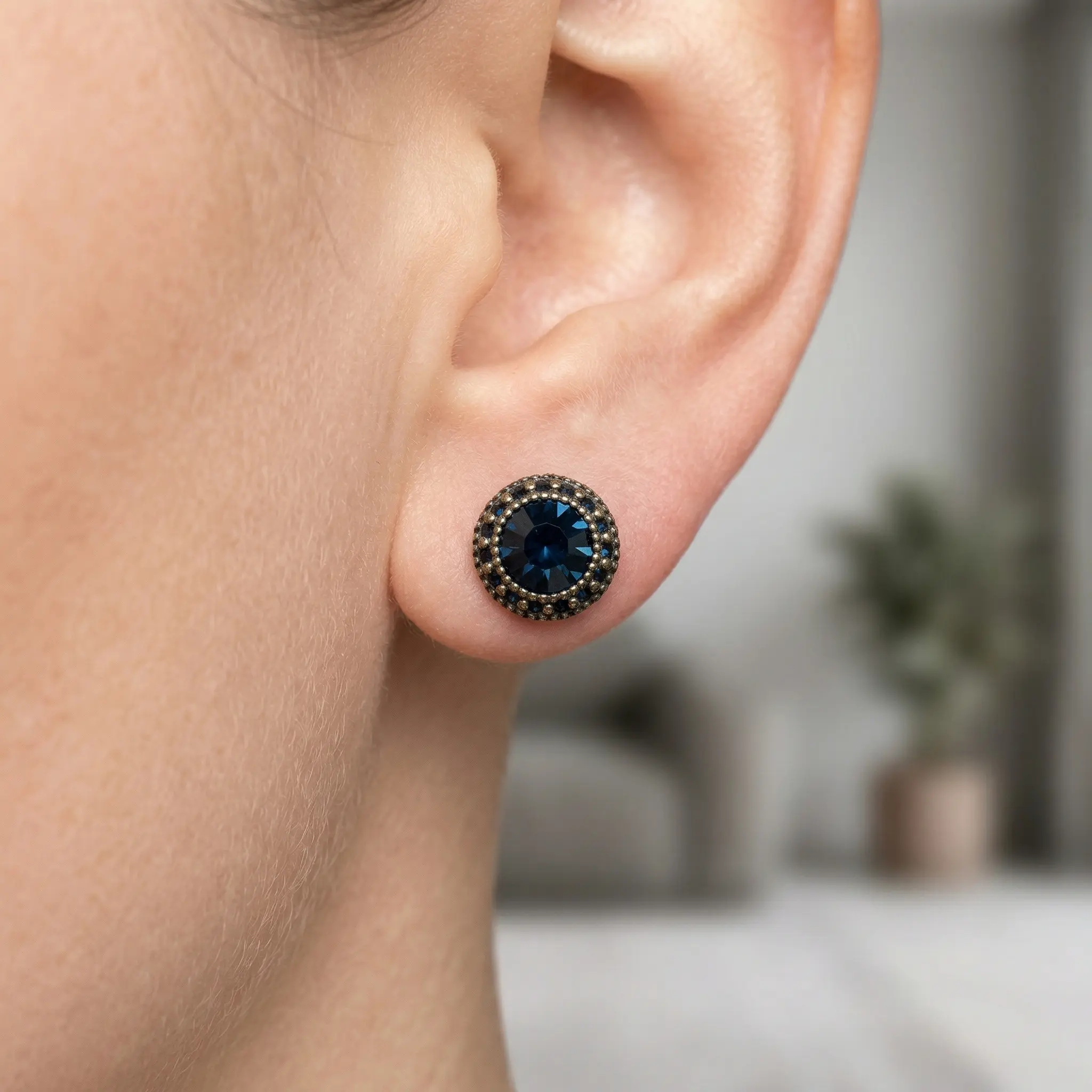 Exquisite, Petite Navy Blue Stud Earrings — Micro-Set with Zirconia — A Viral Online Sensation: Simple, Refined, and Versatile Jewelry