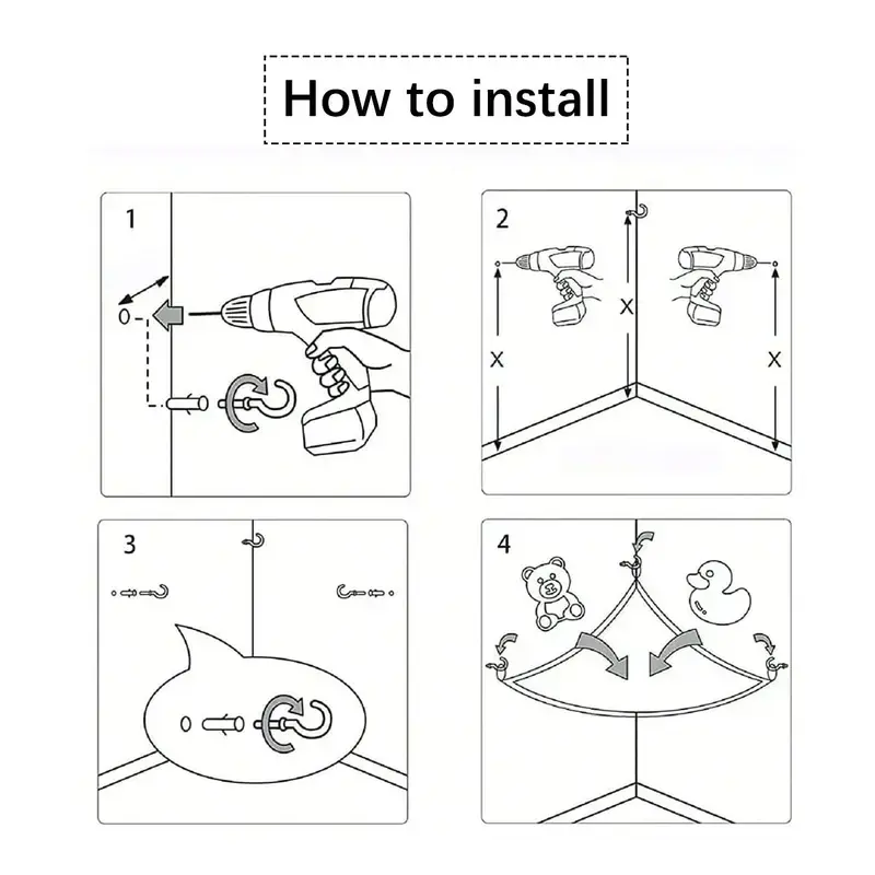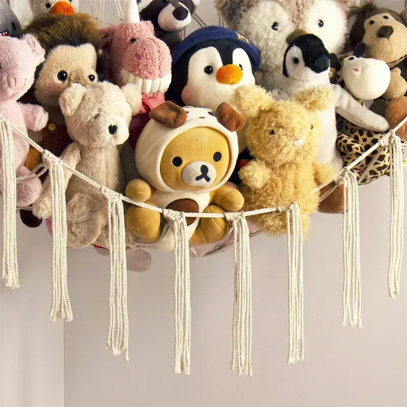 This large corner net is ideal for storing toys and plushies. It's a cute holder for kids' rooms, nurseries, and bedrooms. The hammock design adds a playful touch to any home decor. Perfect for organizing and displaying stuffed animals.
