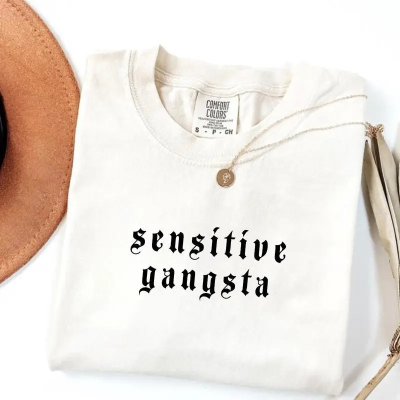 Sensitive Gangsta Mommy Mamacita Graphic T-Shirt, Funny Meme Quote Tee, Retro Sarcastic Humor Shirt, Trendy Women Aesthetic Tee, Unisex Gift (100% Cotton)