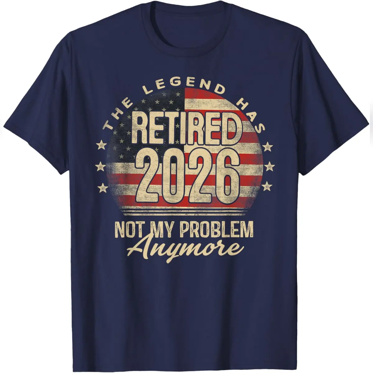 The Legend Has Retired 2026 Funny Retirement USA Flag T-Shirt Relaxed Fit Cotton T-Shirt