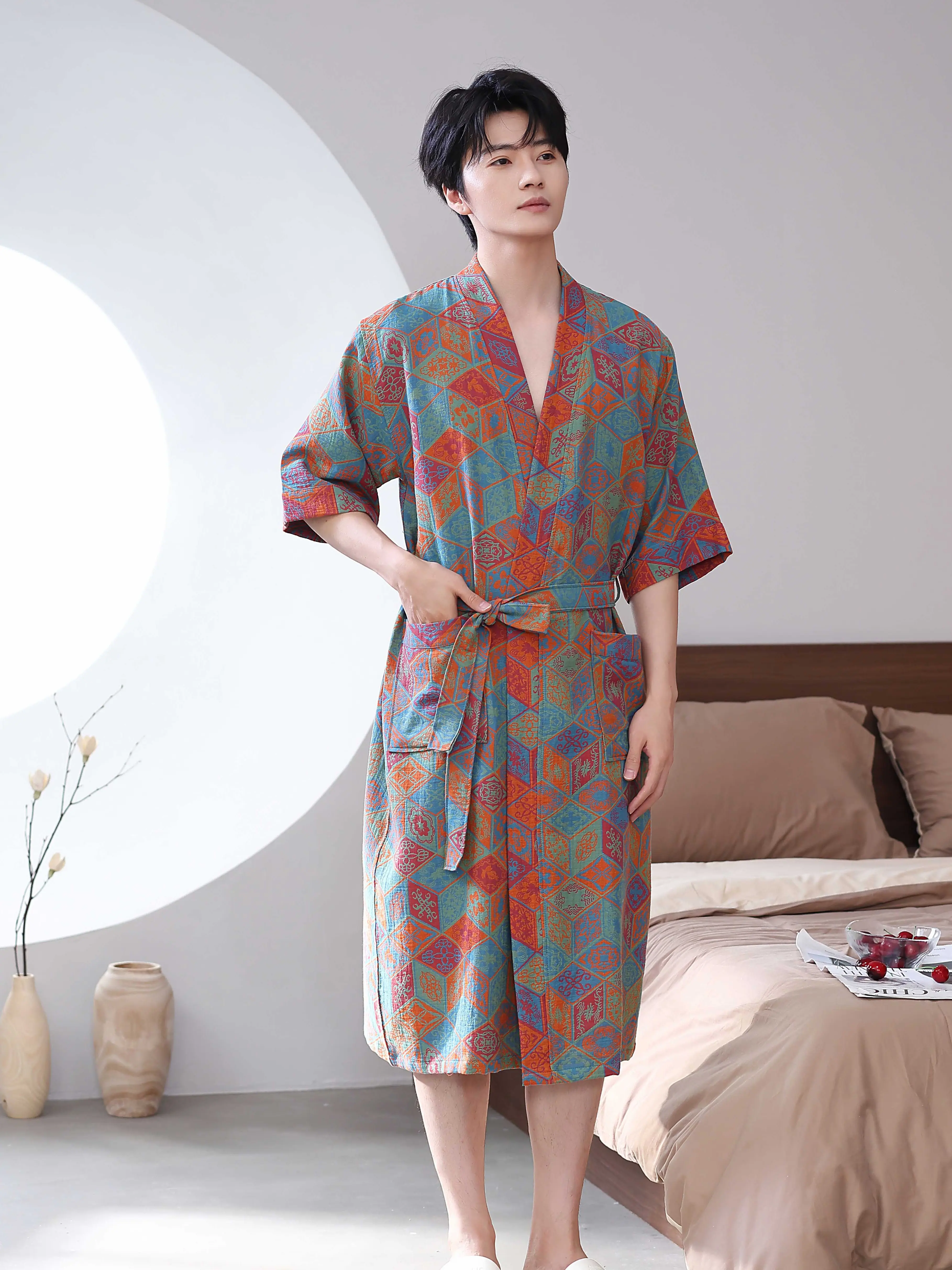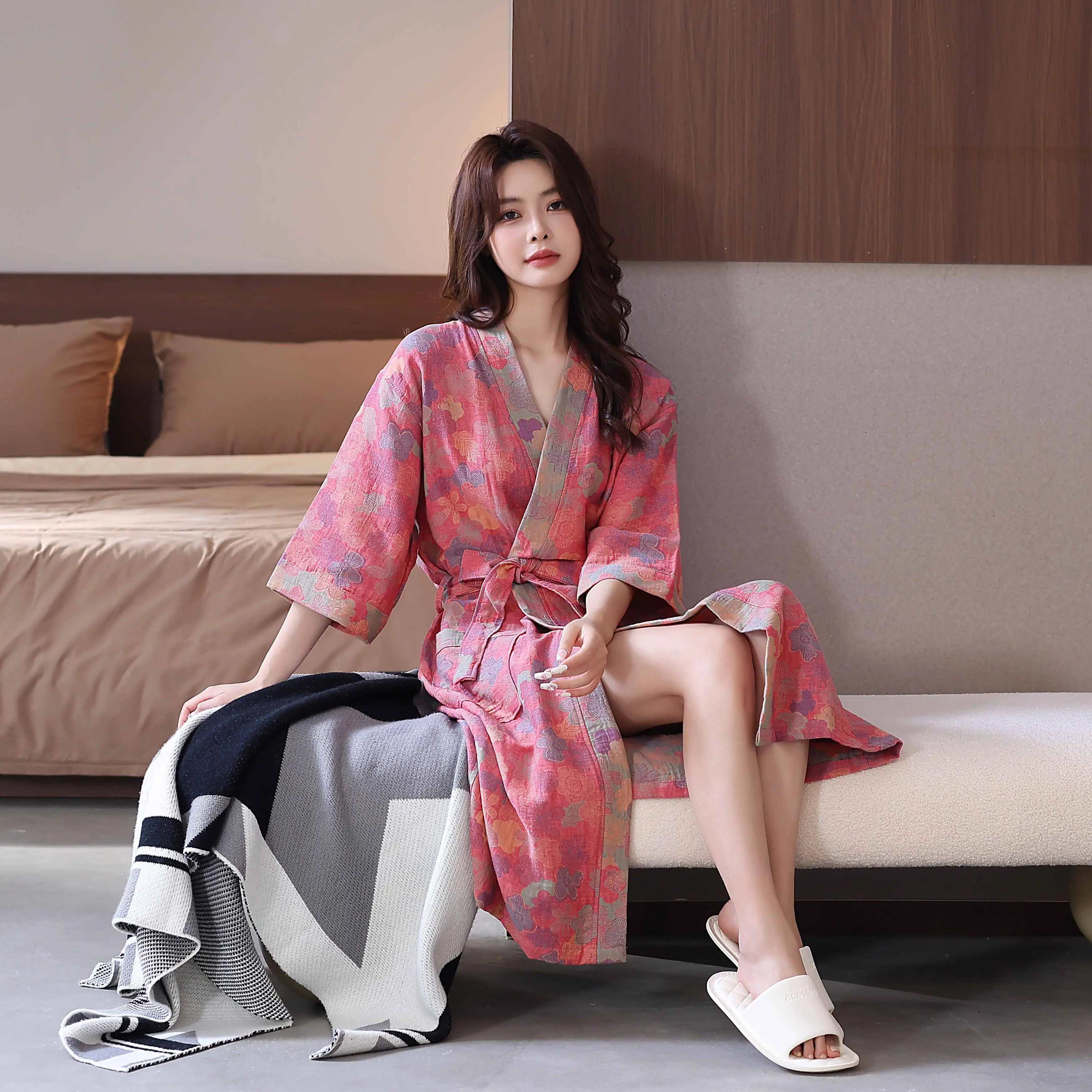 Pure cotton double-layer gauze bathrobe, Class A, spring/summer thin pajamas, home wear, couple's bathrobe, absorbent and quick-drying bathrobe