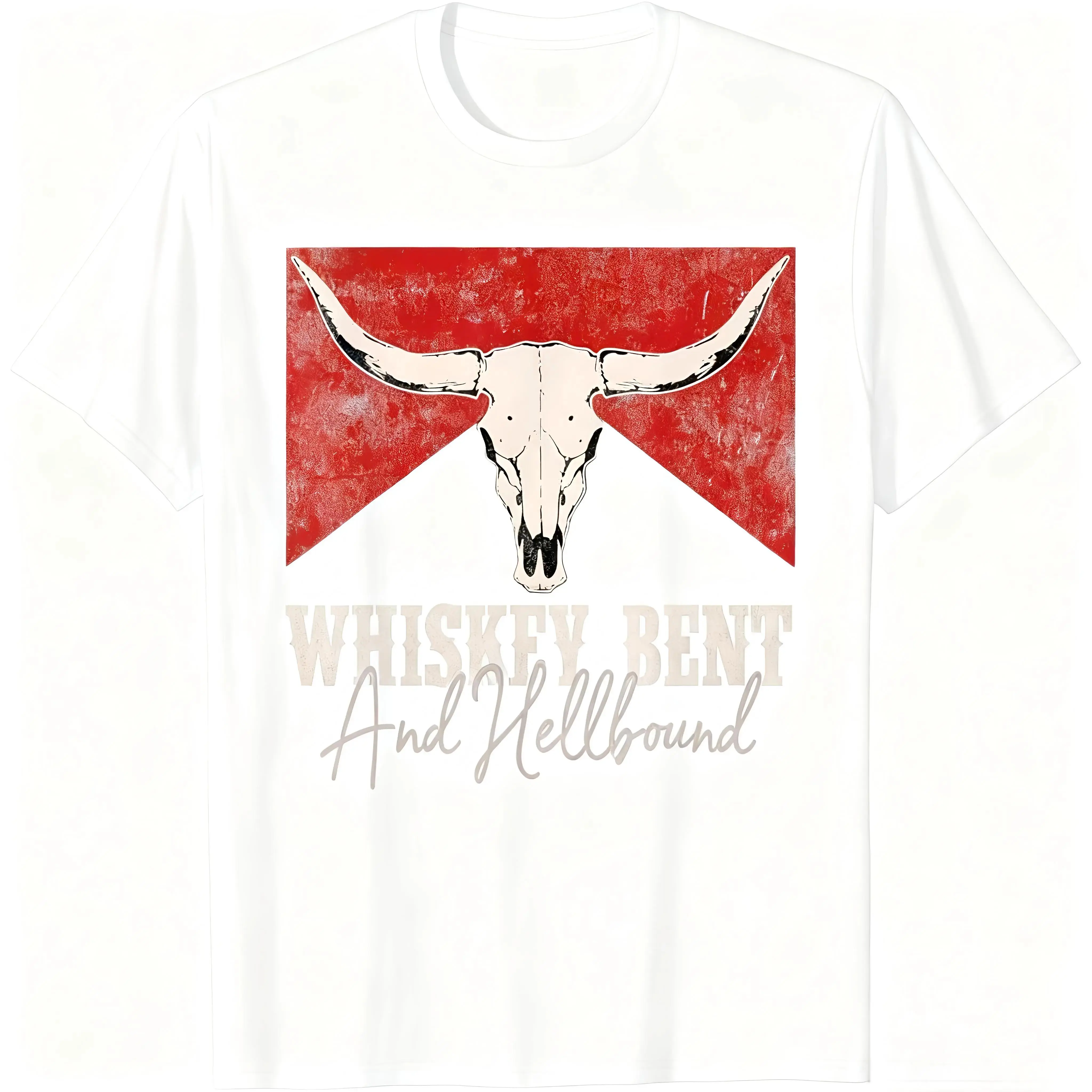 5. Whiskey Bent And Hellbound Graphic Western Cactus Deserts T-Shirt, Oversized Short Sleeve Classic Heavy Cotton T Shirt Printed Graphic Tee Men Women's Casual Short-Sleeved Top