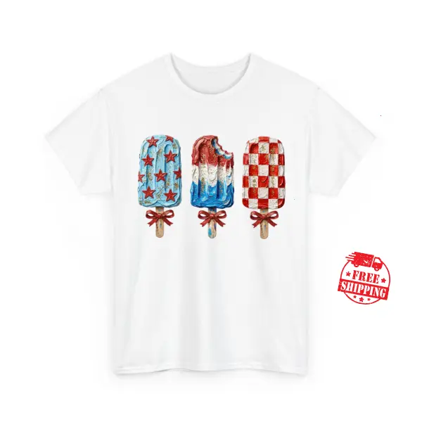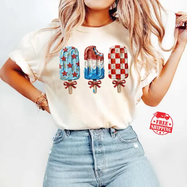 [Sale up to 50%] [Free Ship] Patriotic Popsicle T-Shirt 4th of July Sublimation Americana Shirt Trendy Summer Tee USA Stars Memorial Day