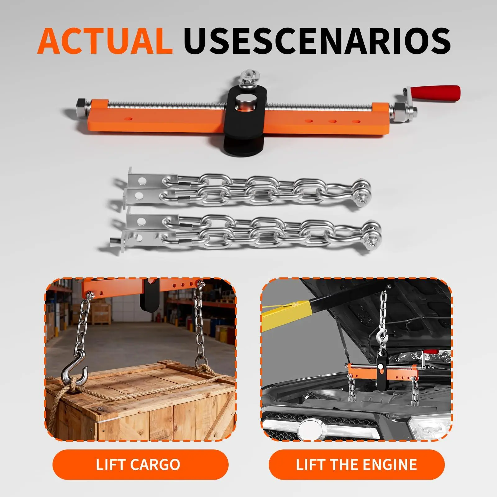 Versatile Professional ApplicationIdeal for automotive repair, workshops, farms, and DIY projects. Compatible with engine hoists, shop cranes, and cherry pickers for indoor and outdoor use across diverse environments.