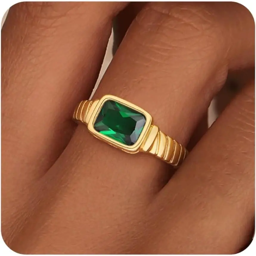 ✨ Discover the perfect gift with this vintage chunky gemstone emerald ring. Crafted in 14K gold plating, it features a stunning emerald CZ signet. Ideal for birthdays, this ring is a timeless piece of jewelry. Available in sizes 6-11, it fits comfortably on any finger. Non-tarnish, ensuring lasting beauty.