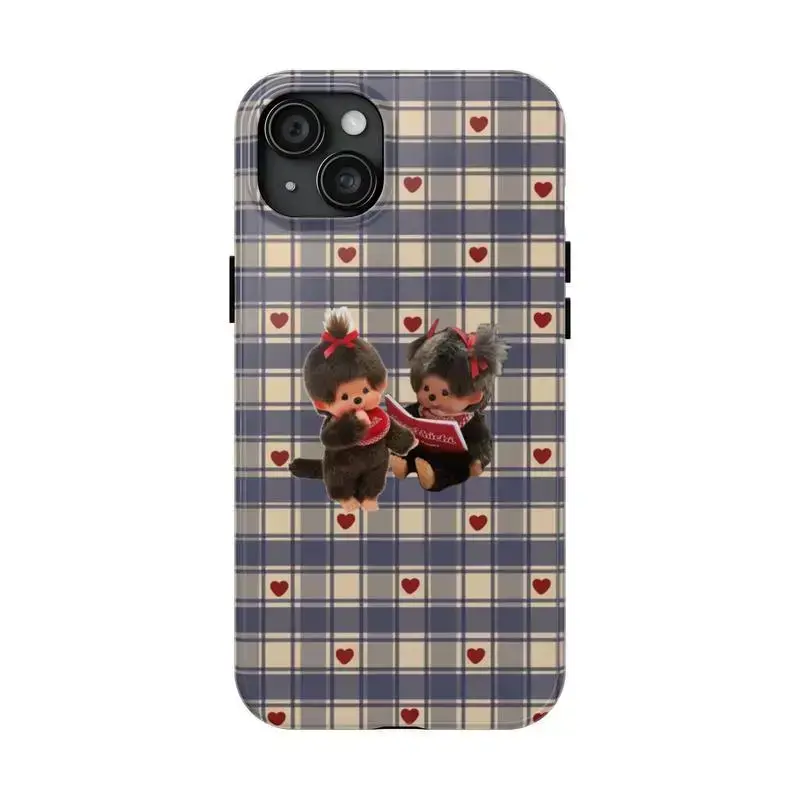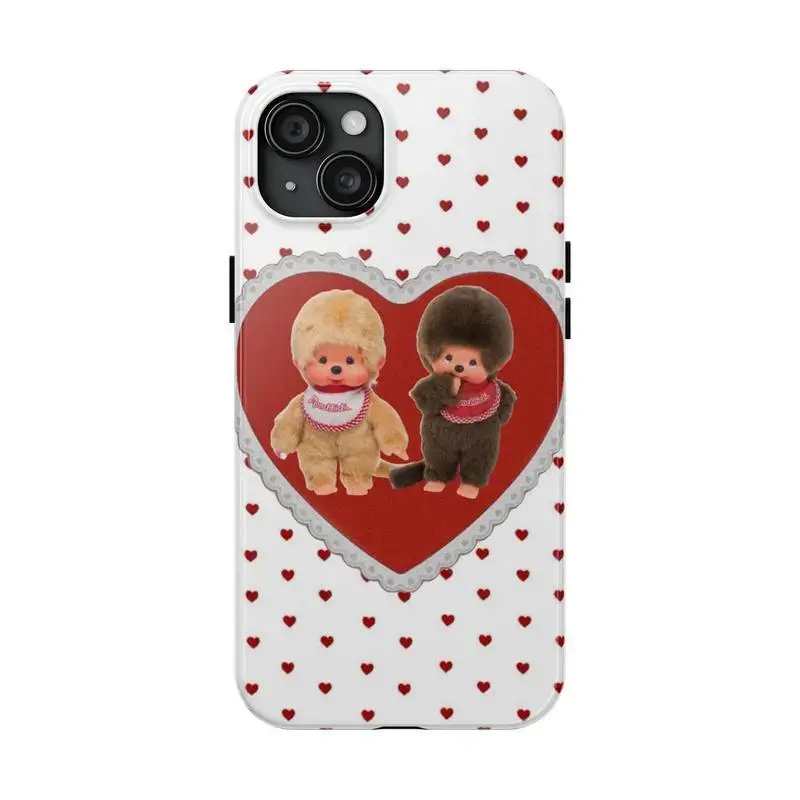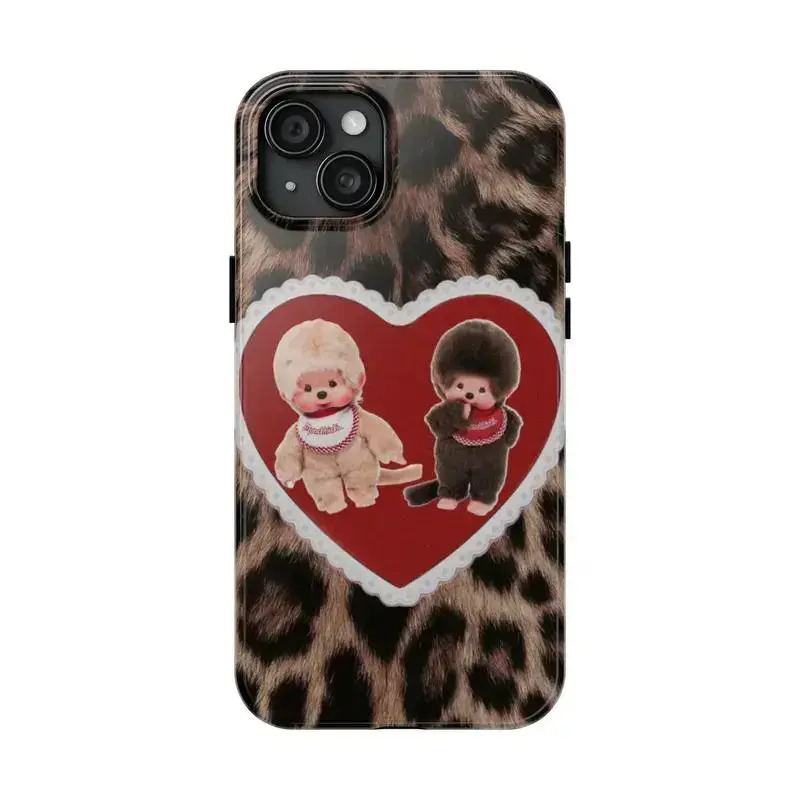 Monchichi Polka Dots Mix Leopard Tough Phone Case, Cutest Design Striped Case Cover Suitable for iPhone 17-X Pro Max