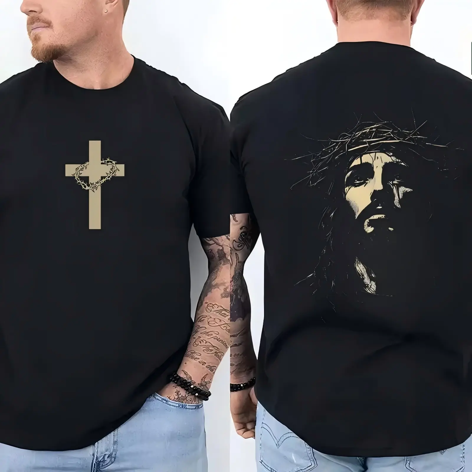 Jesus Crown of Thorns Washed T-Shirt: God Apparel & Christian Streetwear Graphic Tee | Easter Shirt & Gym Pump Cover