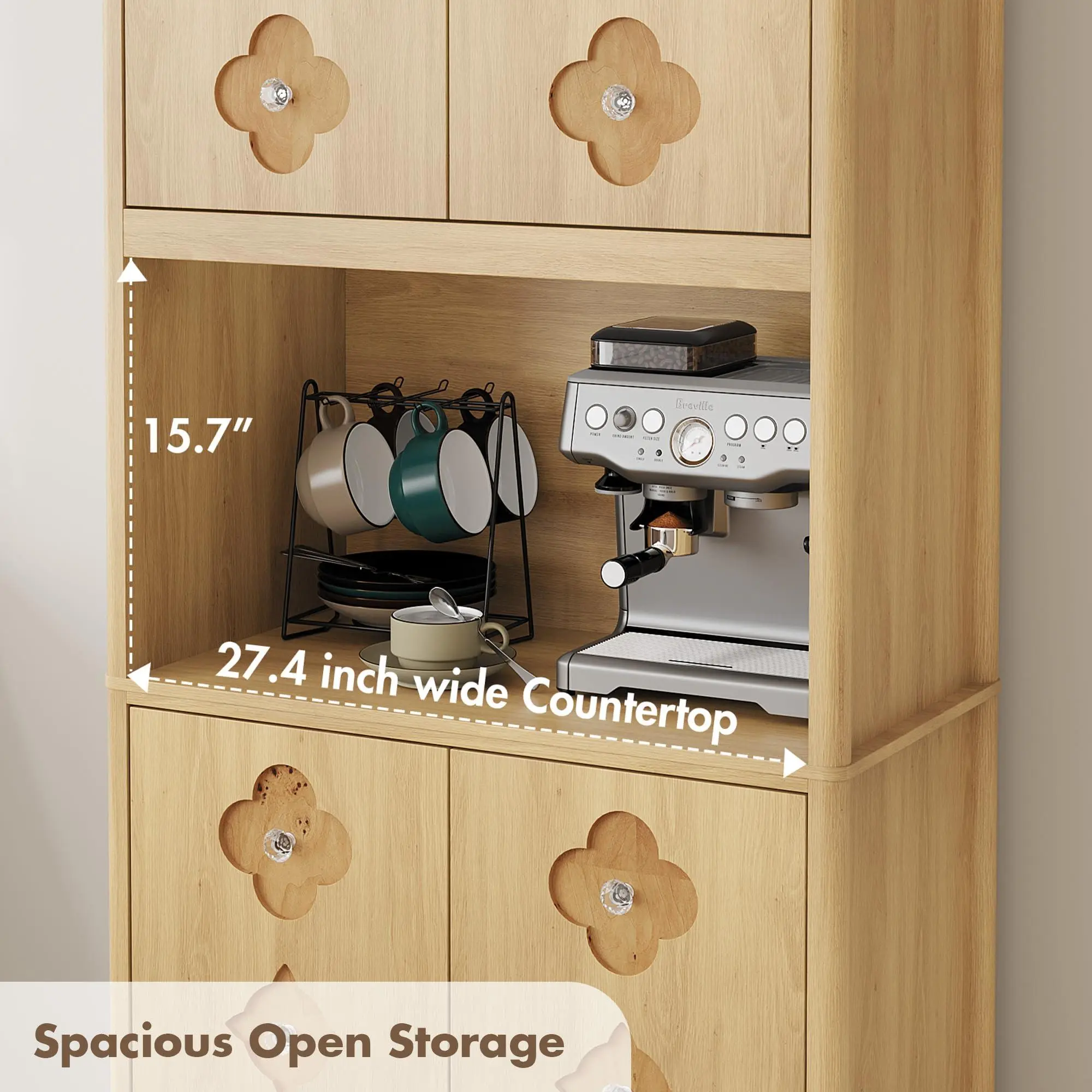 MULTI-ROLE VERSATILITY: This flexible tall kitchen cabinet transitions seamlessly across spaces: use it as a kitchen pantry for dry goods, a dining room buffet for table linens, a display case for collectibles, or an entryway cabinet for shoes and bags. Its middle open section doubles as a compact coffee bar for bar essentials, balancing hidden storage and stylish display to suit diverse home needs