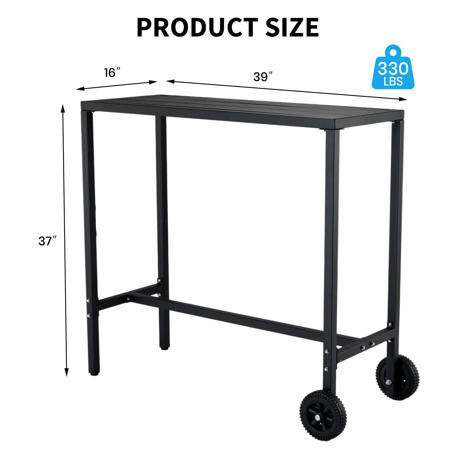 Built to Last, Holds Everything: Built with heavy-duty carbon steel, this outdoor bar table supports drinks, platters, and even a beverage tub with confidence. The all-weather black finish ensures it stays looking sharp on your deck, patio, or backyard.