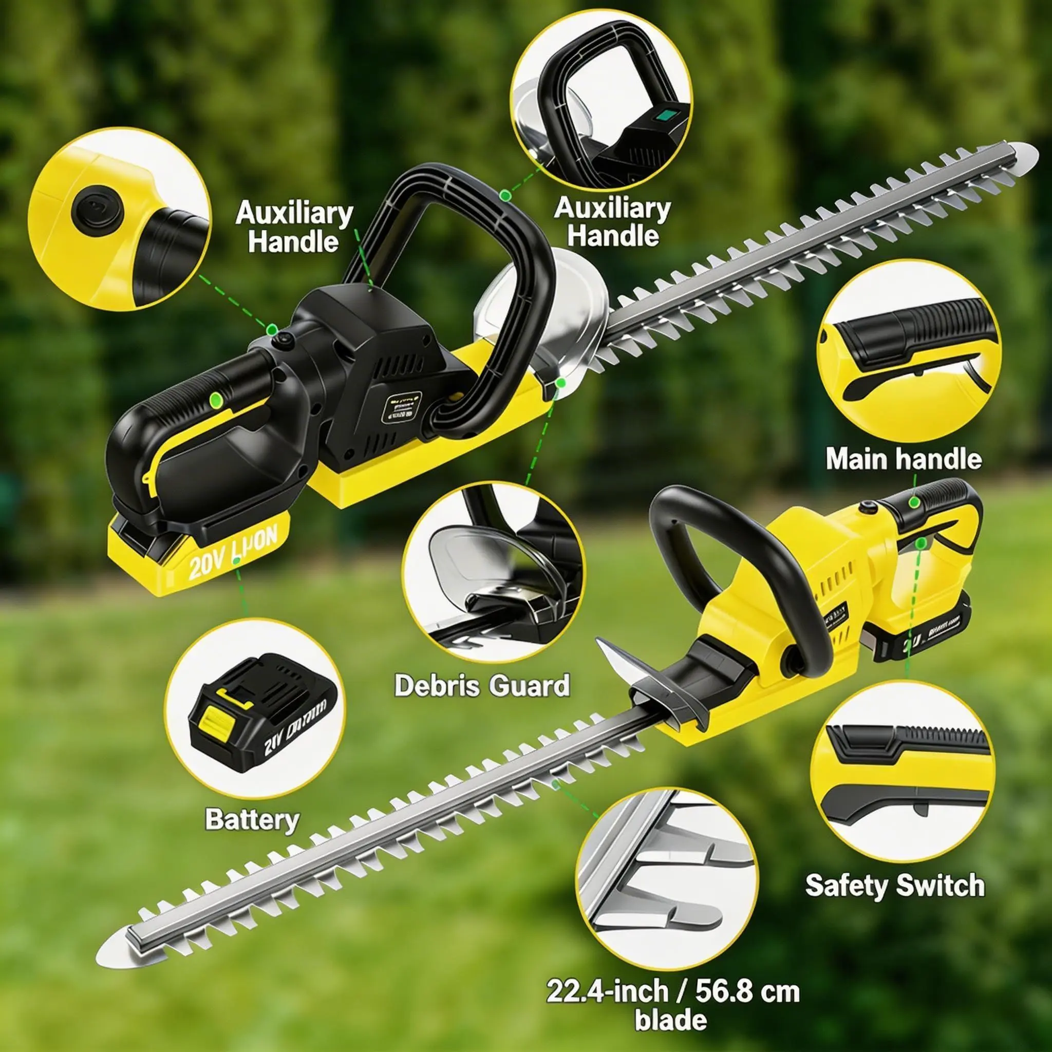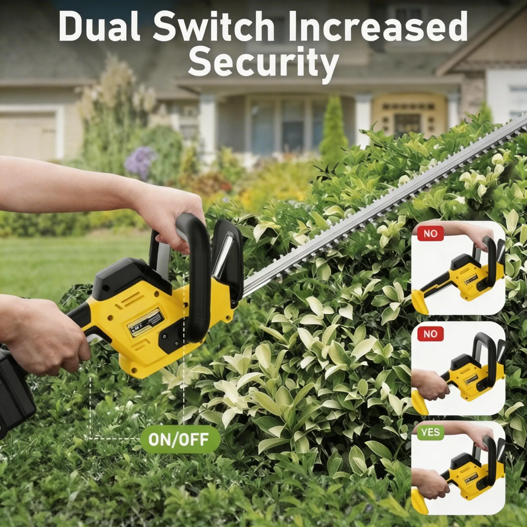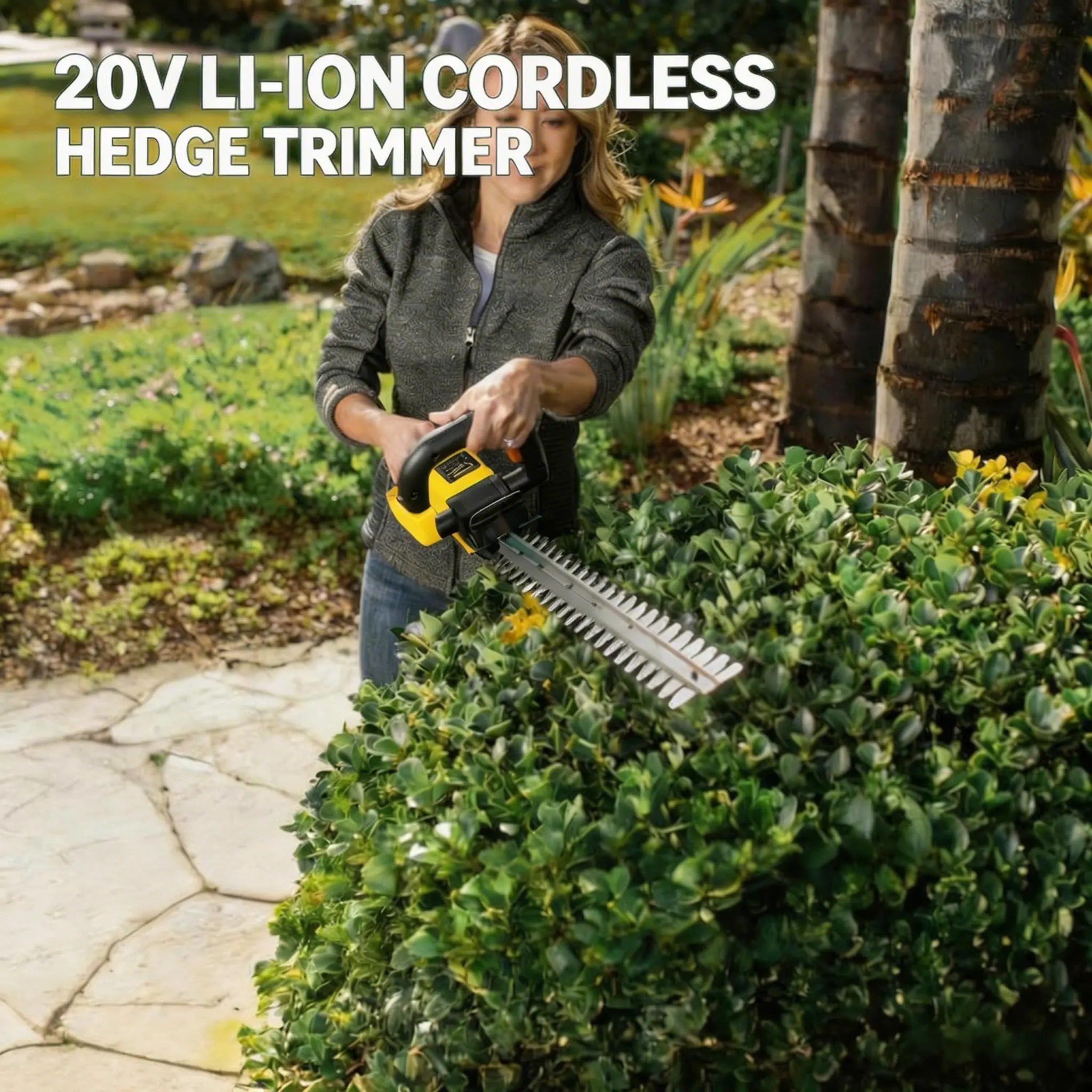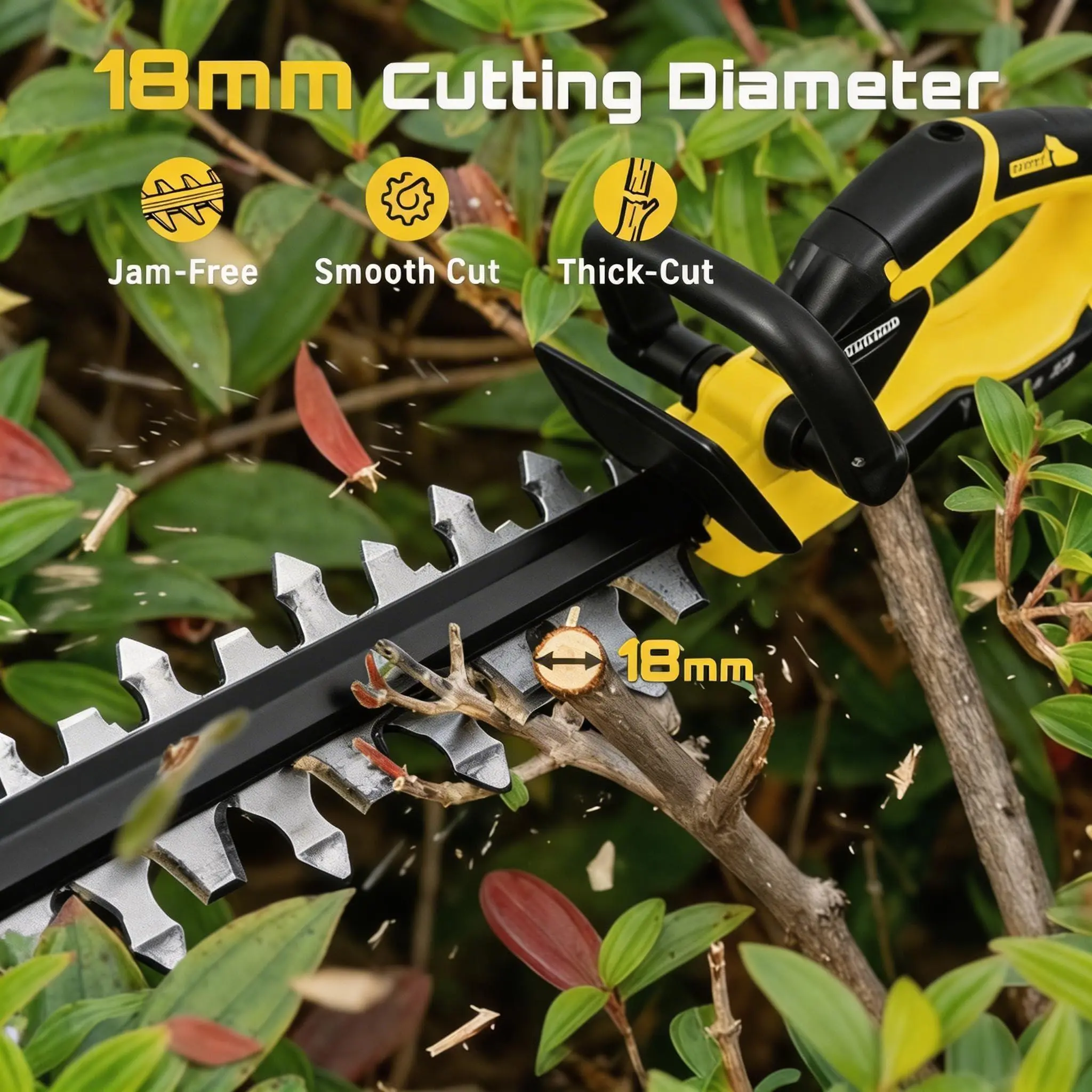 Powerful Performance: This 20V hedge trimmer is equipped with a powerful motor capable of up to 3,000 strokes per minute (SPM). Paired with two 2.0Ah lithium-ion batteries, it significantly extends runtime, helping you keep up with your yard maintenance.