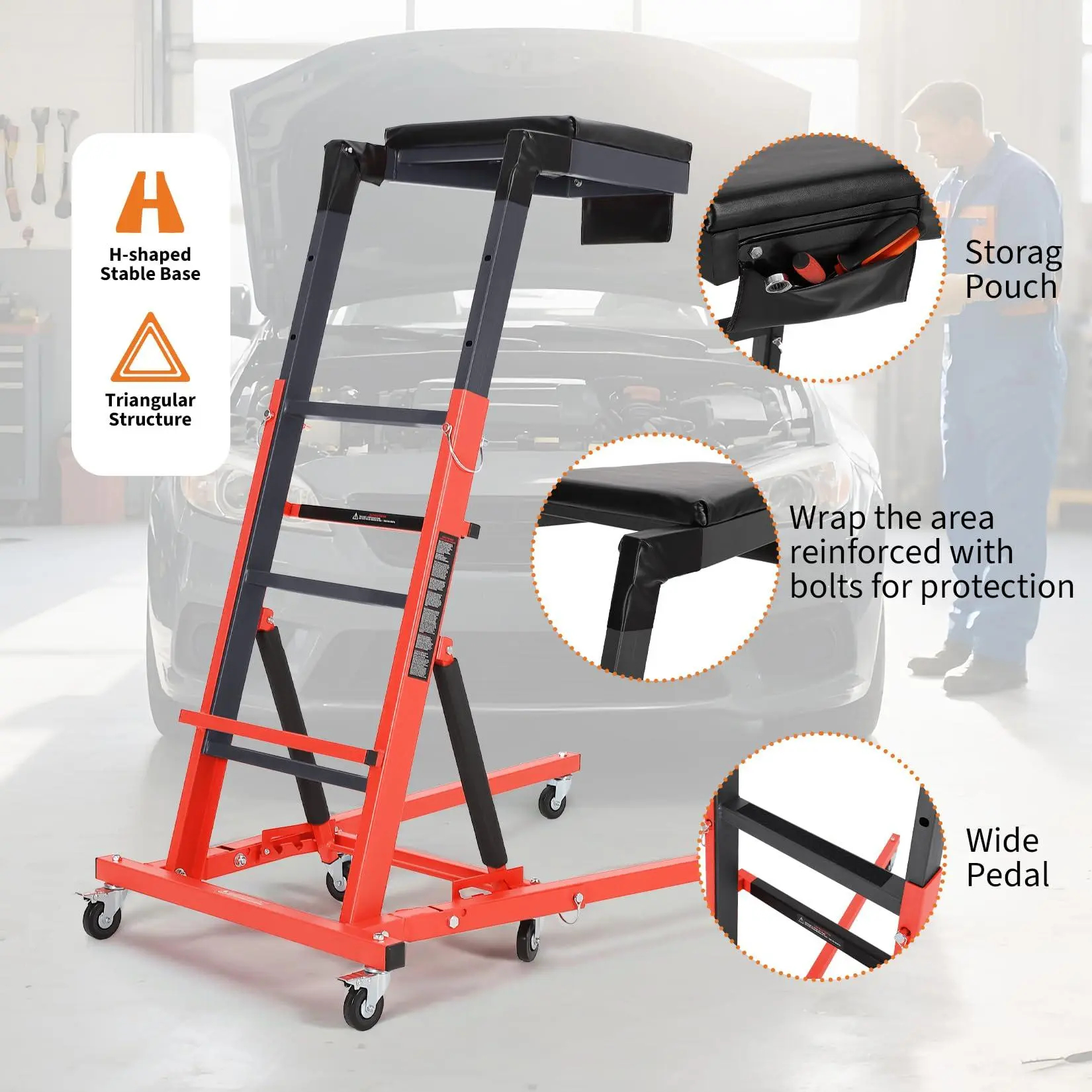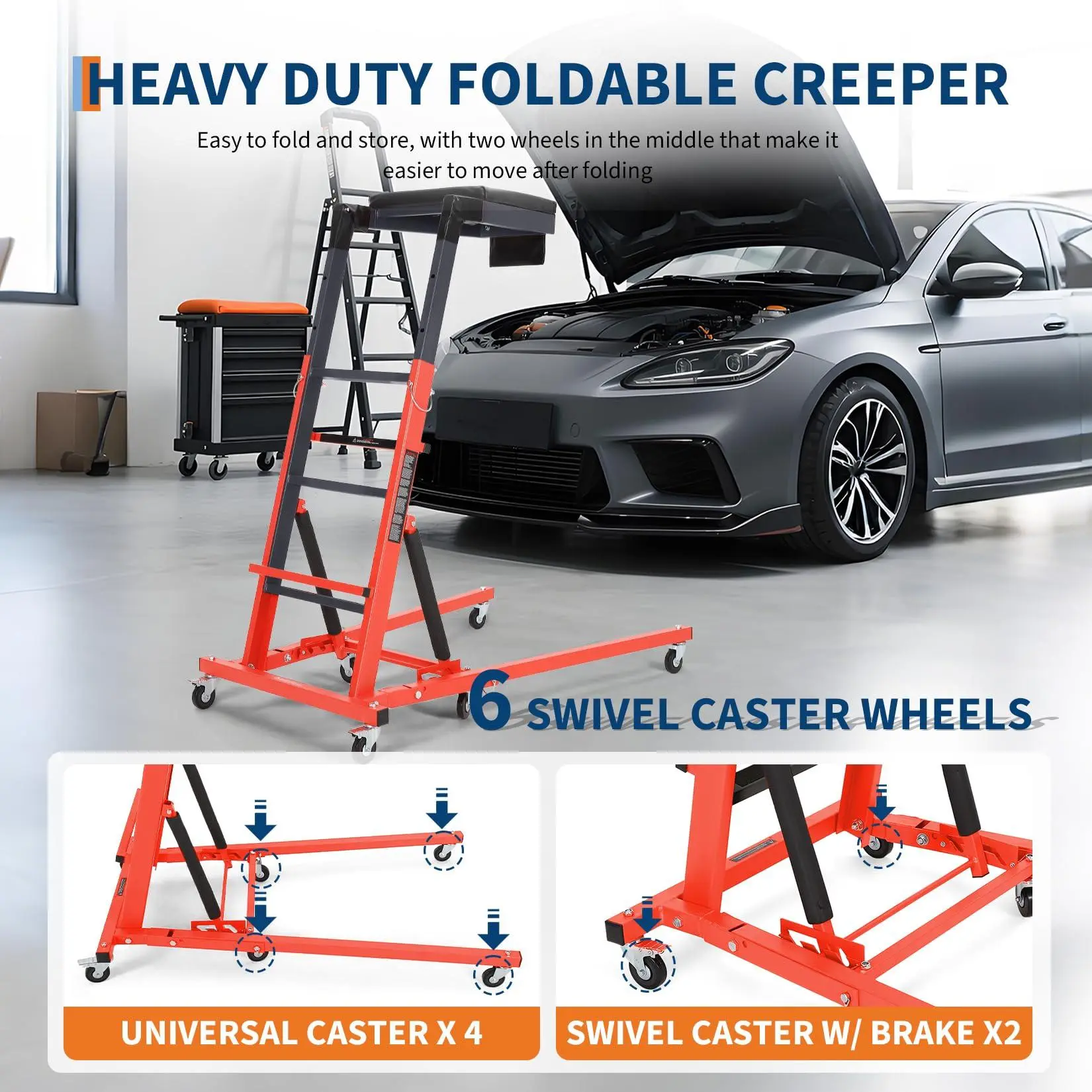 ✅ Ergonomic design for fatigue free work:The wide anti slip step platform evenly distributes weight, while the high crawler design minimizes bending to the greatest extent possible. Very suitable for extending car repair time, improving comfort and efficiency.