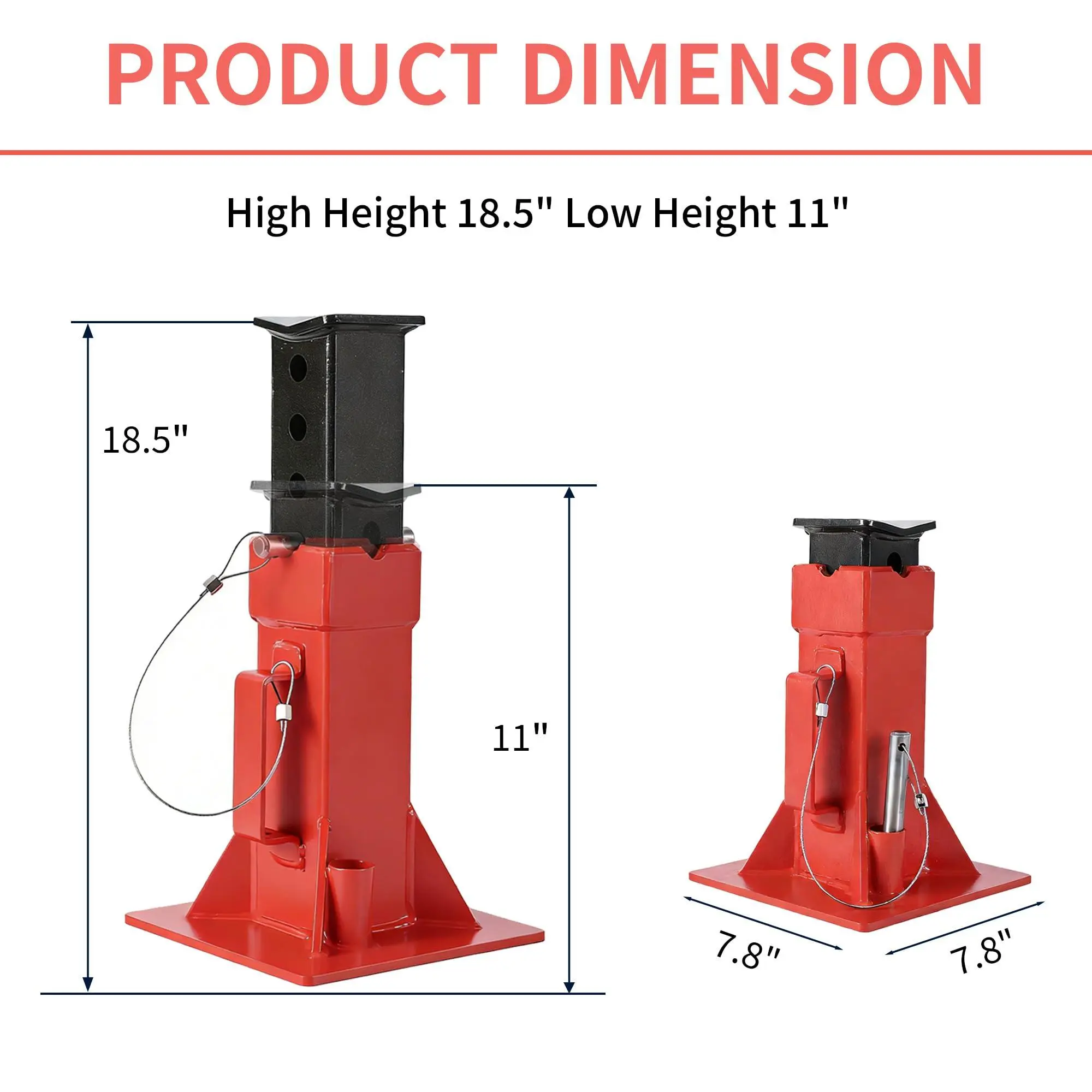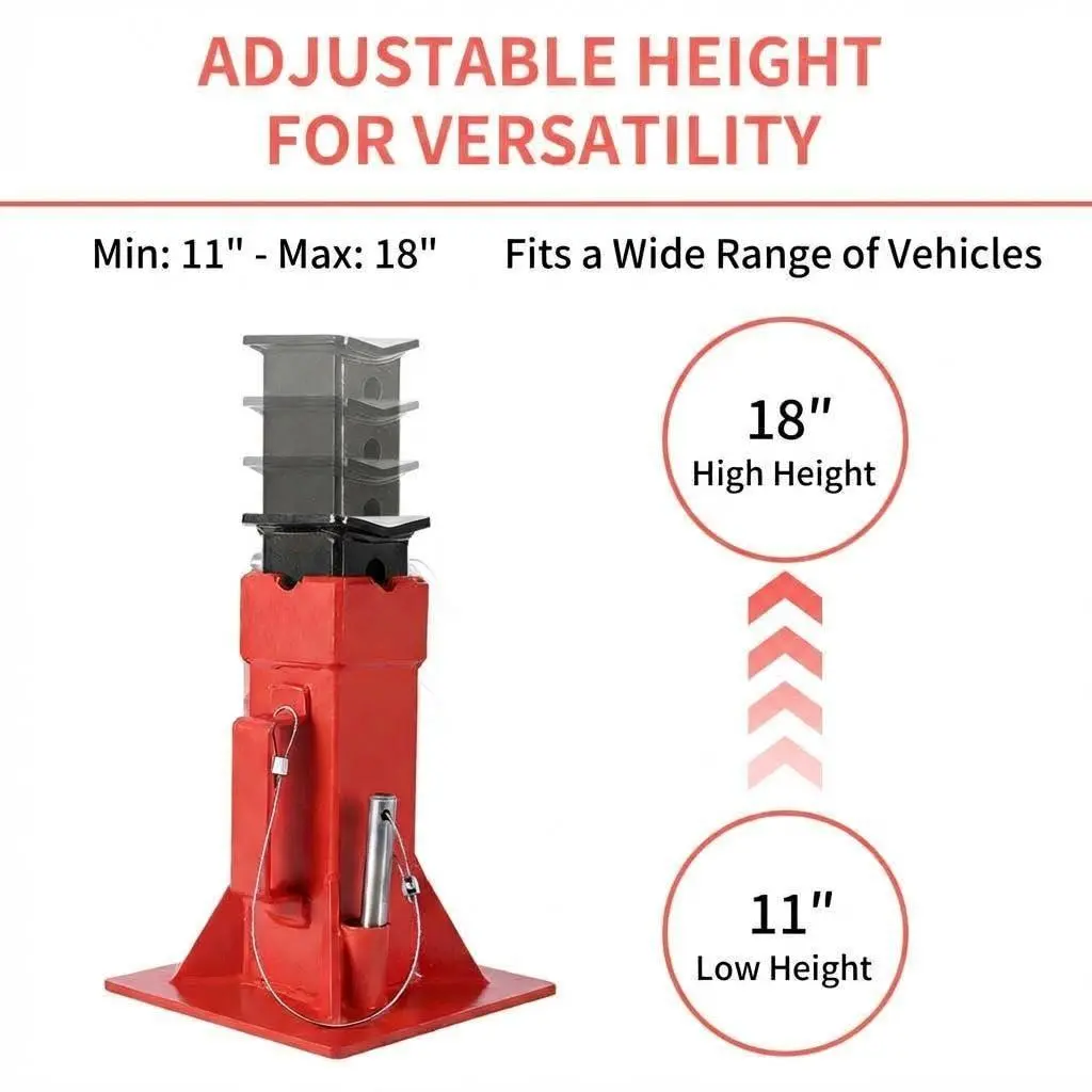 EFFORTLESS HEIGHT ADJUSTMENT: Forget struggling with threaded stands. Our Adjustable Jack Stands feature a Quick-Release Pin system that allows for lightning-fast height changes from 11 to 18 inches. Simply pull the pin, set your height, and it locks securely in place instantly, saving you time and frustration on brake jobs and suspension work.
