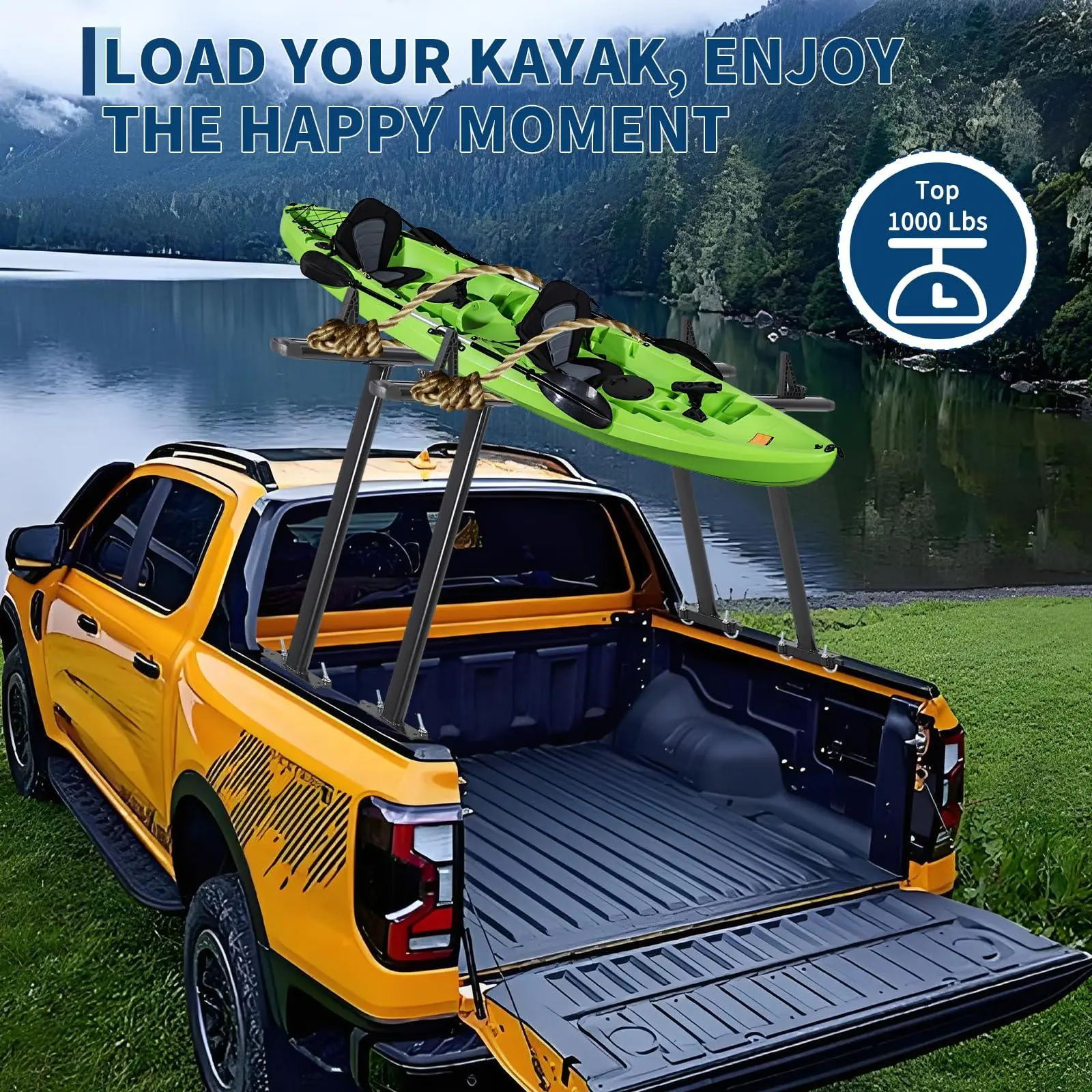 [Heavy-Duty Strength & Large Load Capacity] - Made from lightweight aluminum with reinforced steel legs, this truck rack supports up to 1000 lbs. Perfect for hauling ladders, kayaks, lumber, surfboards, and rooftop gear for work or adventure.