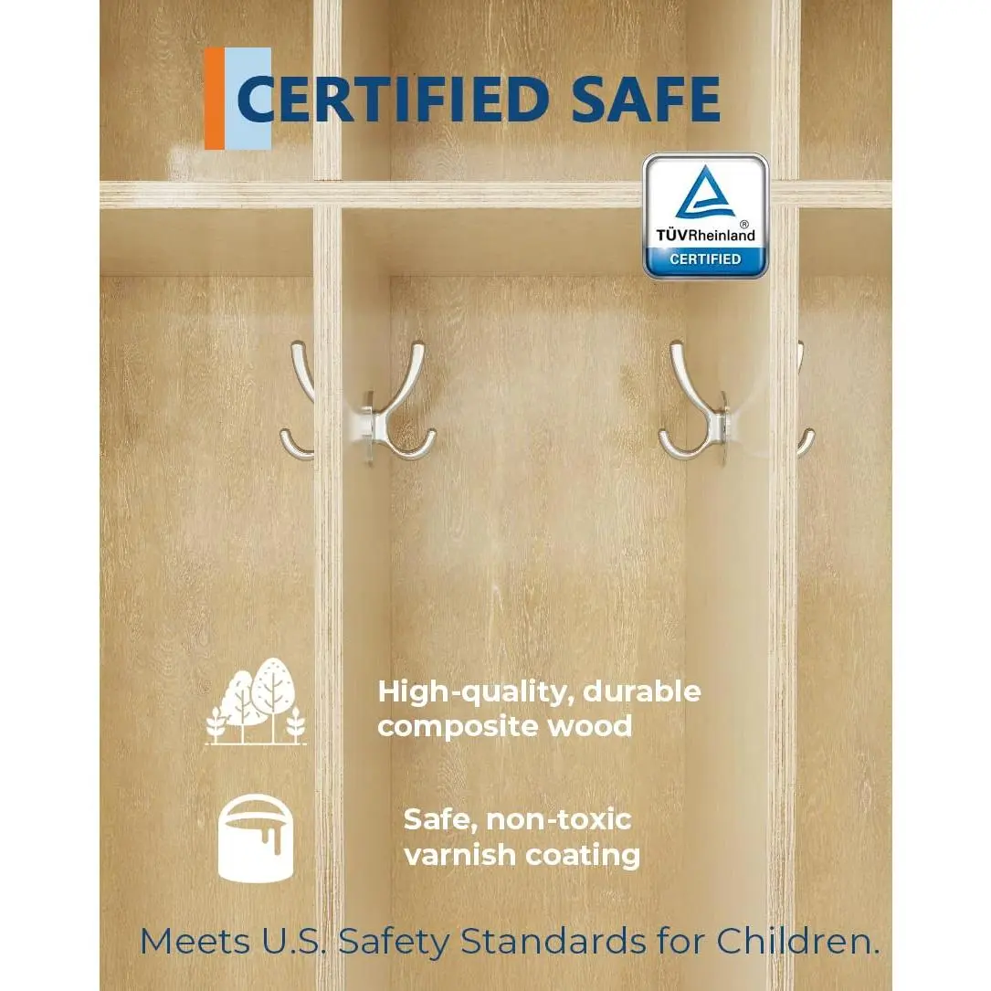 🌱Built for Safety, Made to Last🌱🌱 Your child’s safety is our priority. Made from sturdy plywood (not MDF) with rounded edges and a smooth finish, this cubby is both tough and child-friendly. It has also passed rigorous stability and safety tests, certified by TÜV—so you can trust it in any child-friendly environment.