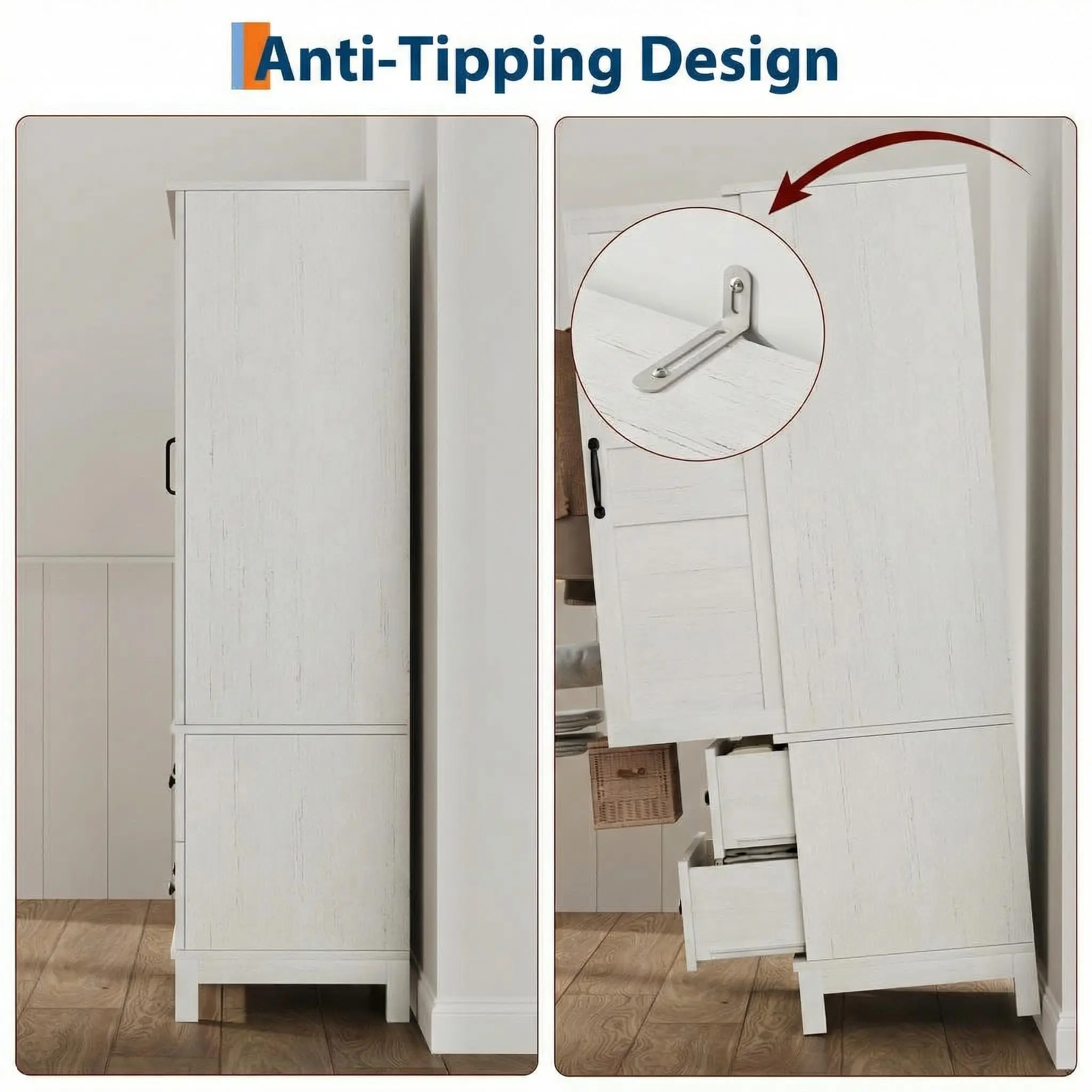 Built for Strength & Safety: Crafted from heavy-duty engineered wood (MDF) with 4 reinforced legs, this wardrobe closet is built to withstand years of daily use. We prioritize your family's safety by including a mandatory anti-tip kit to secure the unit firmly to the wall, preventing accidental wobbling or tipping.
