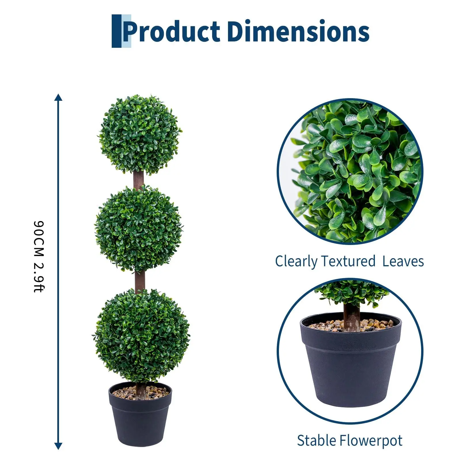 Realistic Triple Topiary: GarveeHome 2 pack artificial triple ball boxwood topiary trees stand 3FT/90cm tall, offering lush, realistic faux greenery that mimics live plants without watering, trimming, or shedding, ideal as a low-maintenance indoor outdoor plant solution