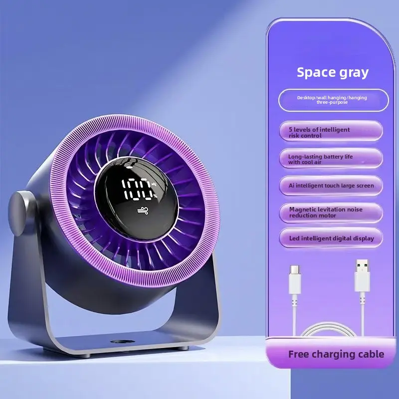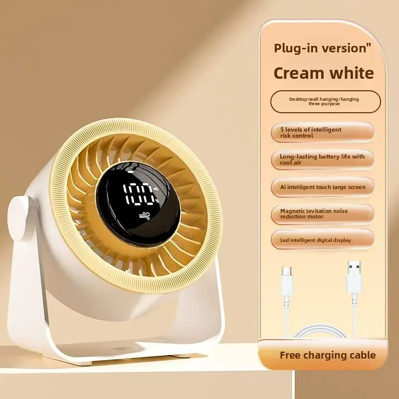 Desktop USB Fan for Office and Students, Silent Small Fan with Digital Display, High-Speed Turbo Fan for Home Use