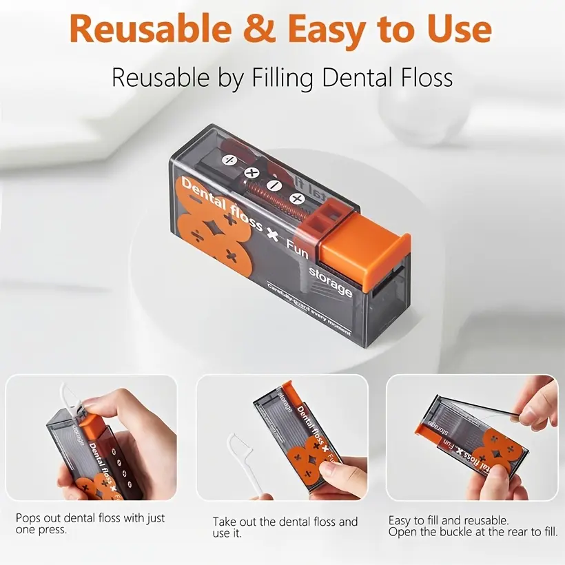 Built-in Storage Compartment: Features a hidden storage space to hold extra floss picks, ensuring you always have a backup when you need it. Keeps floss picks clean, dust-free, and organized.