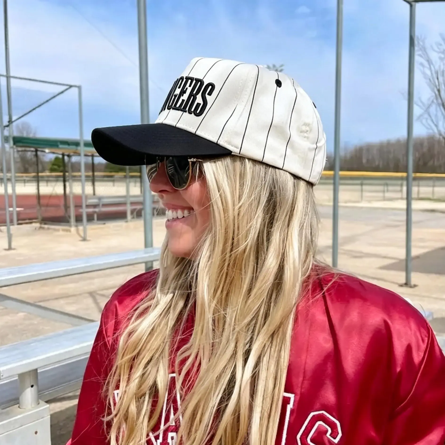 ·CLASSIC VINTAGE PINSTRIPE DESIGN – Timeless navy striped pattern with a retro baseball look, perfect for adding a classic yet trendy touch to any outfit.