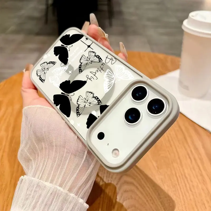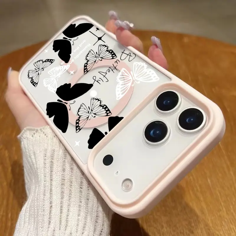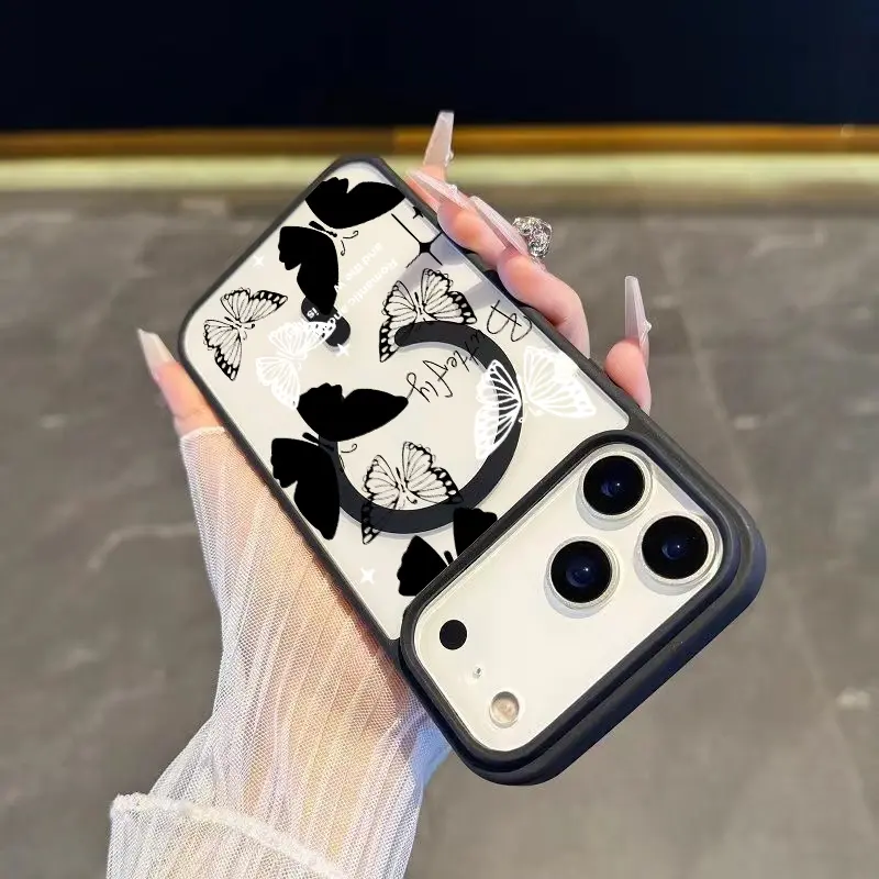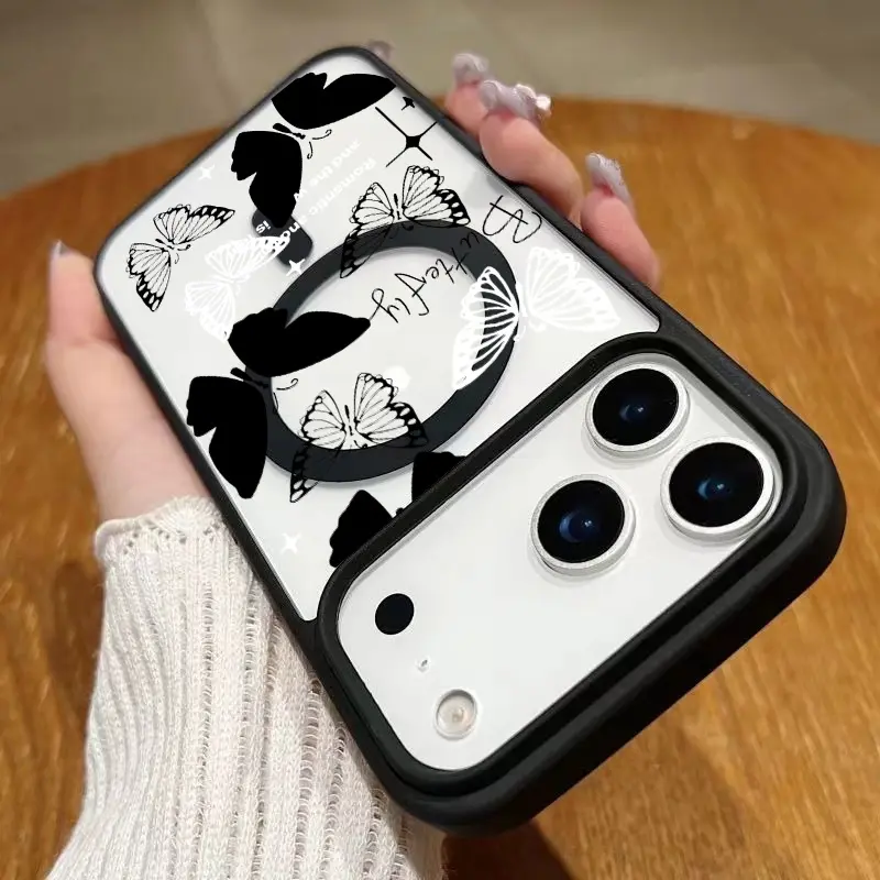 Black and white butterfly Magsafe Phone Case Shockproof Compatible for iPhone 17 Pro Max Air 16 16e 15 14 Plus 13 12 11 X XS Magnetic Hard Acrylic Back Soft TPU Edge Shock-resistant Cover Gift 2D printing