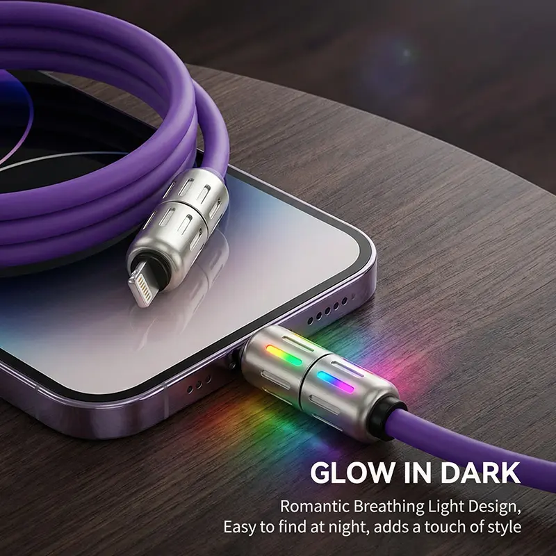 Durable Liquid Silicone Cable Design Crafted from premium liquid silicone, this cable is soft to the touch yet extremely durable. It withstands over 20,000 bends and resists tangling, ensuring long-lasting use in both home and travel scenarios
