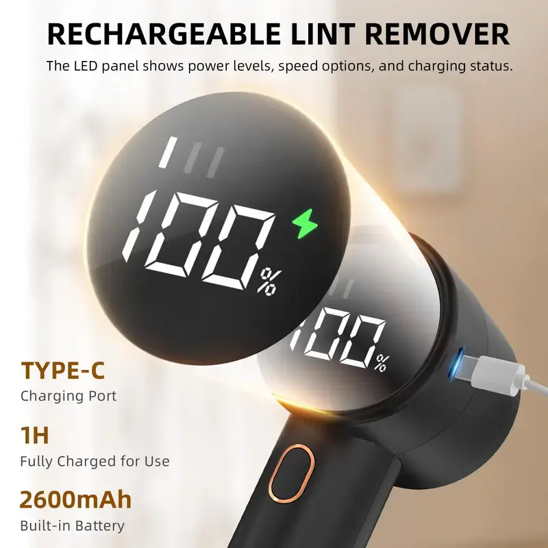 ·【Digital LED Display】-- Stay in control with our intuitive digital LED display. Easily monitor the battery level and speed setting, ensuring you always have the power you need for your fabric Shaver; Long last working time, 2600mAh battery, 2 hours quickly charging, work up to for 3.5 - 4.5 hours