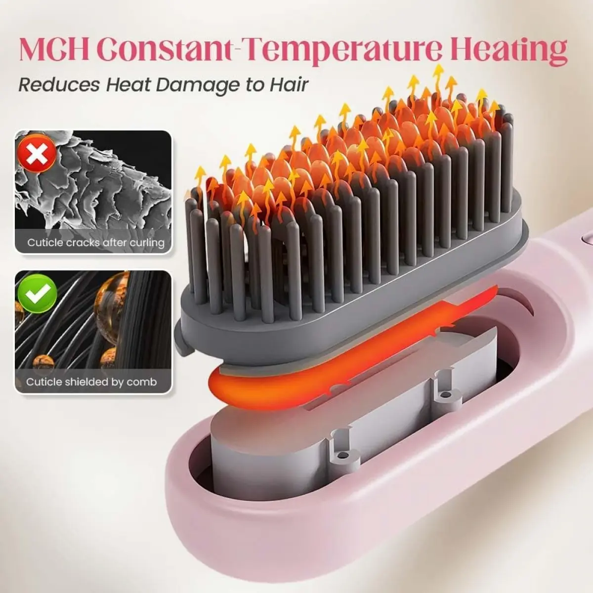 5. 2PCS Brush Pro 2026 Hair Straightener Brush, Cordless Hair Straightener for Short or Long Hair, Portable Thermal Hair Comb for Travel, 4 Temps, Smooth & Shine Styling (Pink)
