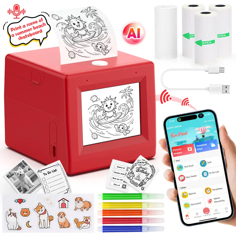 【Voice to Image AI Sticker Printer】Simply speak your idea and this AI sticker printer will automatically generate images and print them instantly. Powered by smart AI technology, this mini sticker maker turns imagination into real stickers, making it perfect for kids and creative DIY projects.