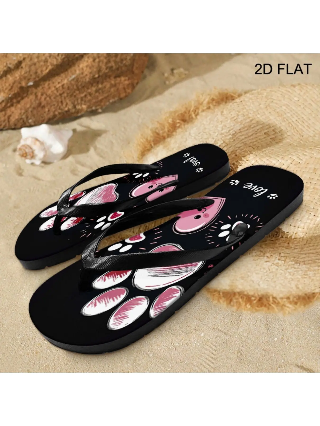 5. Women'S Flip Flops, Cute Paw & Heart Design, Multiple Colors & Sizes Available, Comfortable Fashion Sandals for Daily Wear, Playful & Affectionate Style, Love-Themed Summer Footwear, Women Shoes