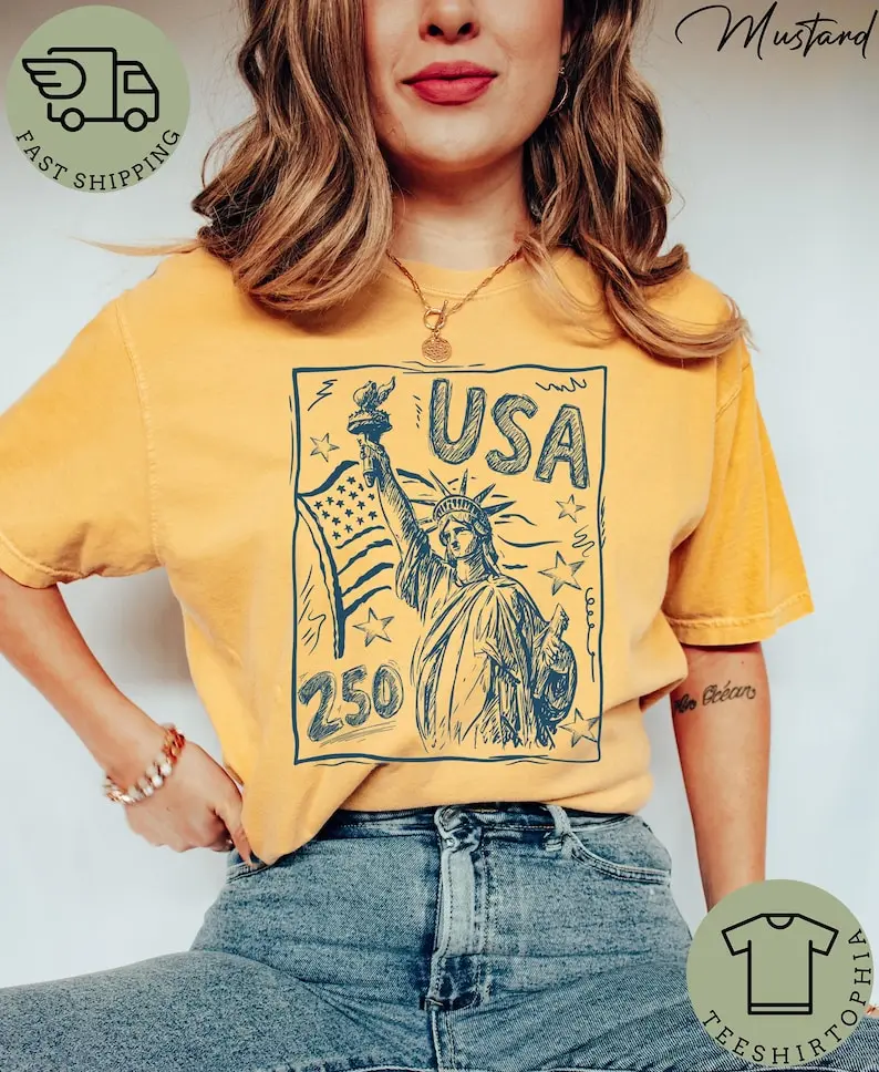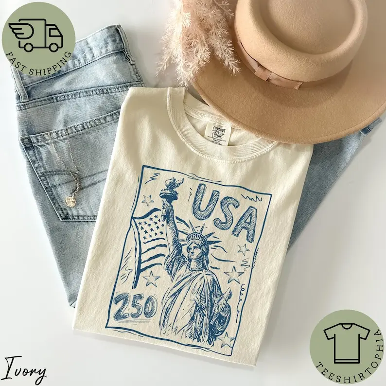 5. 2026 Hot Statue of Liberty Shirt, USA 250 Vintage America Tee, 4th of July T Shirt, Retro Patriotic Graphic Tee, American Flag Shirt #FourthOfJulyVibes #PatrioticHoliday #AmericanHoliday