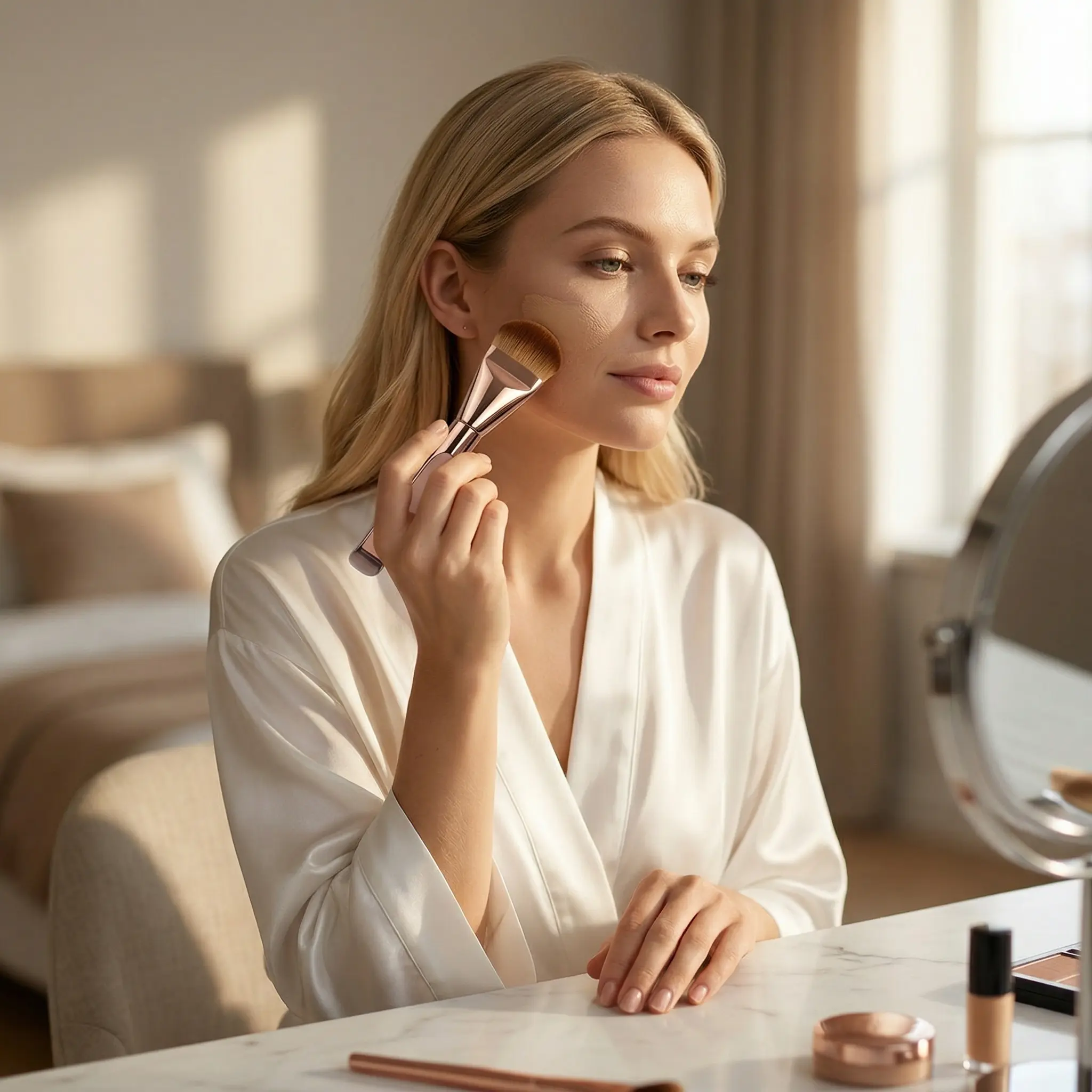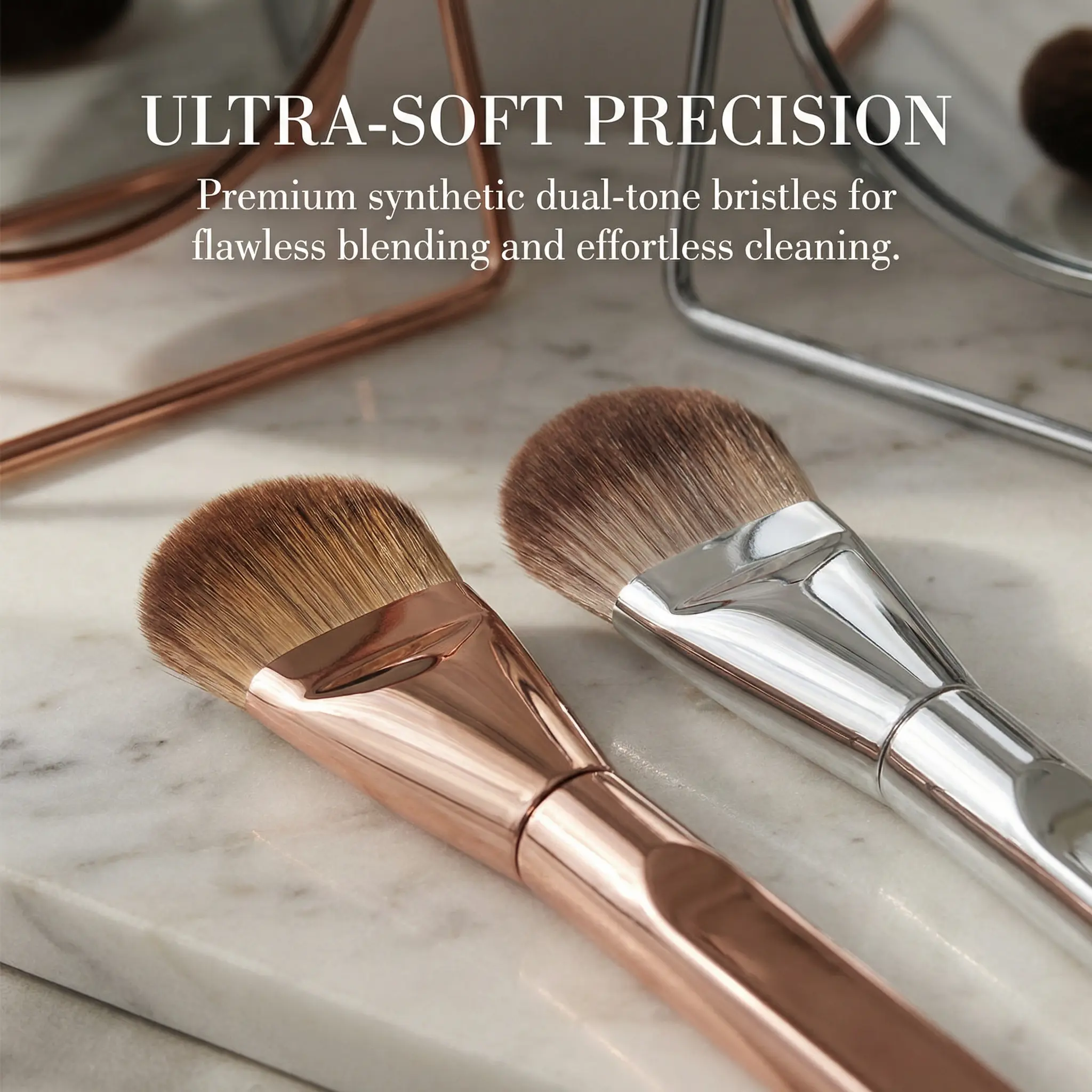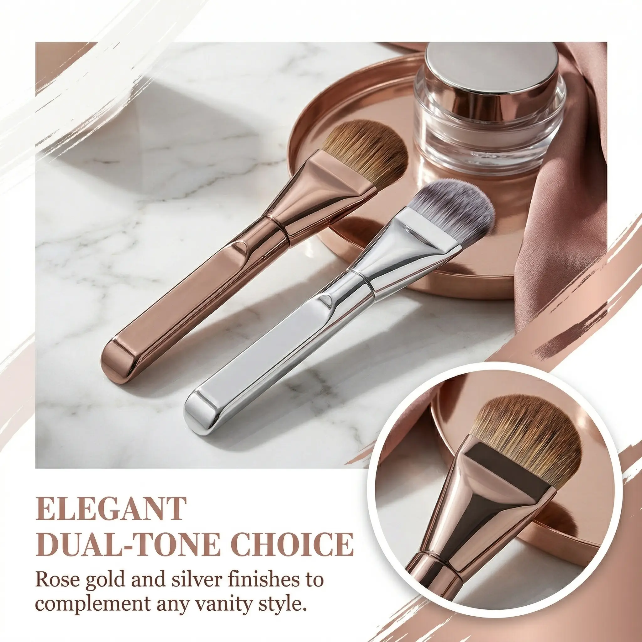 Elegant Dual-Tone Tongue Brush – Premium Synthetic Bristles for Flawless Foundation & Cream Blending – Rose Gold & Silver Finishes for a Luxury Touch makeup brushes set