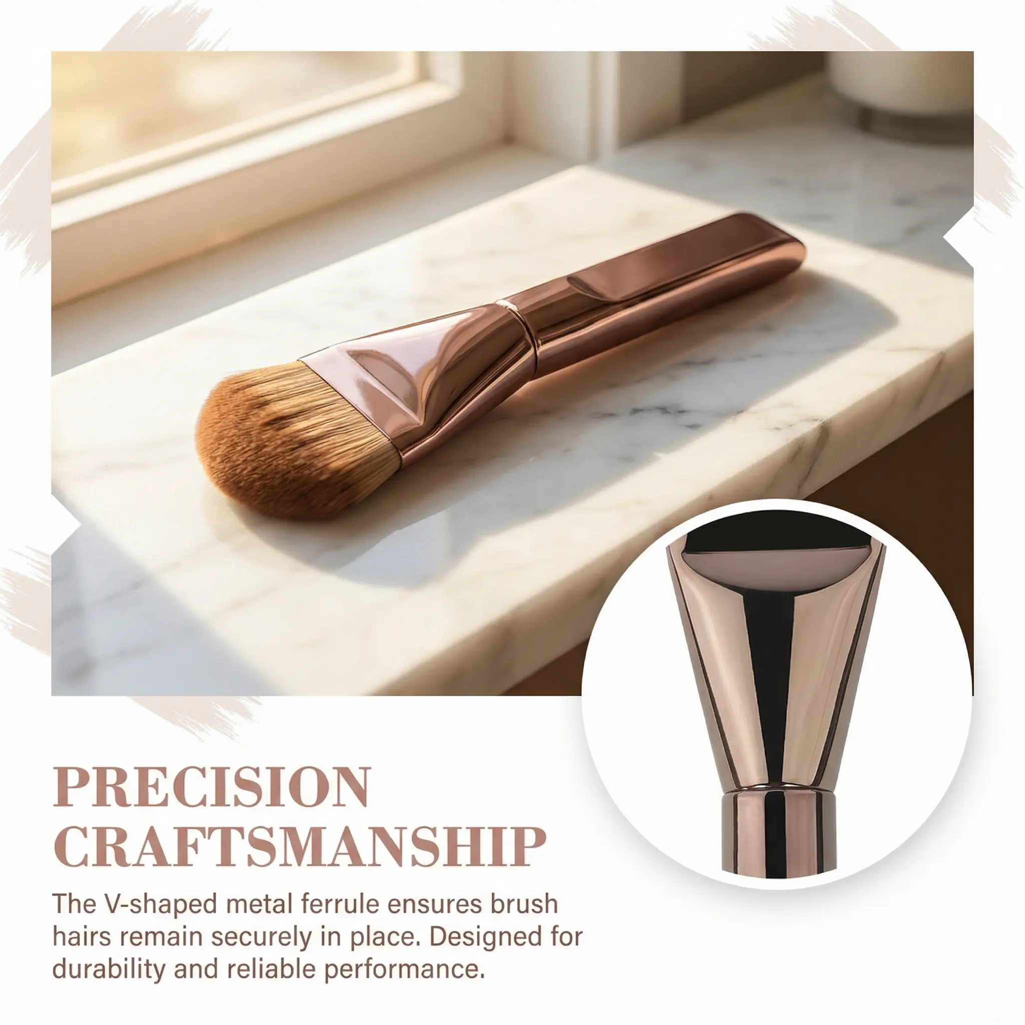 5. Elegant Dual-Tone Tongue Brush – Premium Synthetic Bristles for Flawless Foundation & Cream Blending – Rose Gold & Silver Finishes for a Luxury Touch makeup brushes set