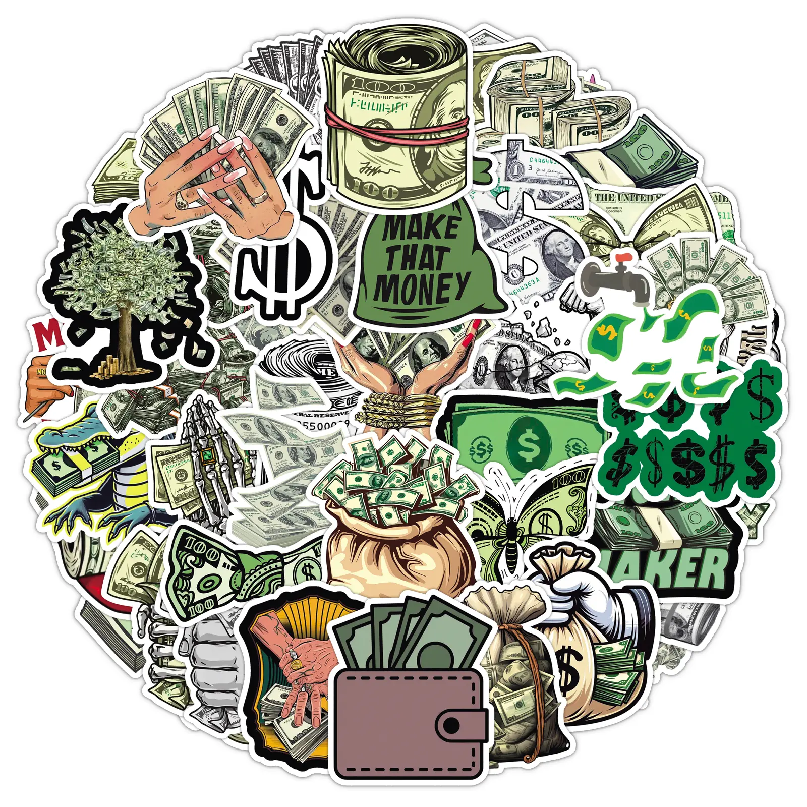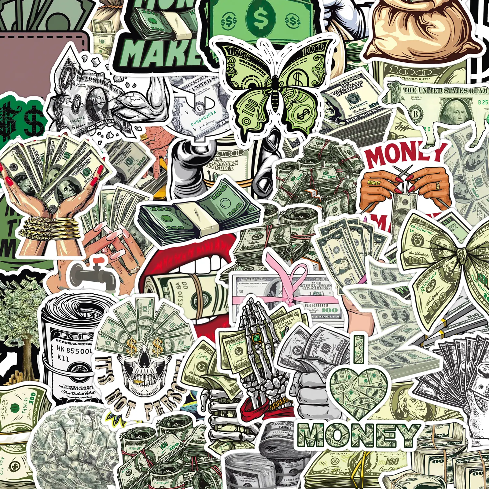 100-Pack Dollar Bill Stickers - 2 American Cash Designs, Creative Money Decals for Phone Cases, Laptops & DIY Projects (Foil Printing, Realistic Texture)