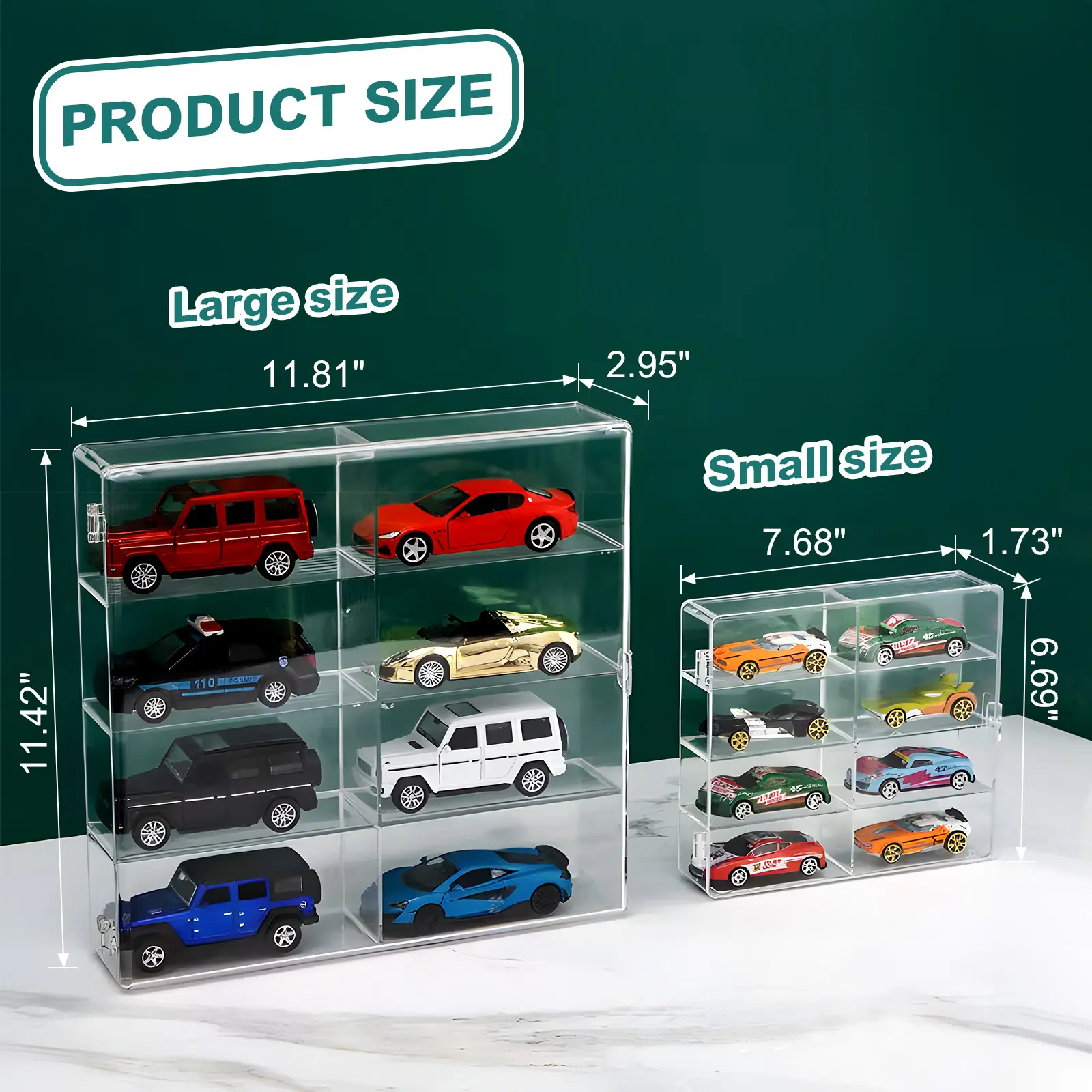 Choose from large (8-grid) or small (8-grid) sizes to perfectly fit your diecast car collection, with stackable design to expand your display vertically as your collection grows.