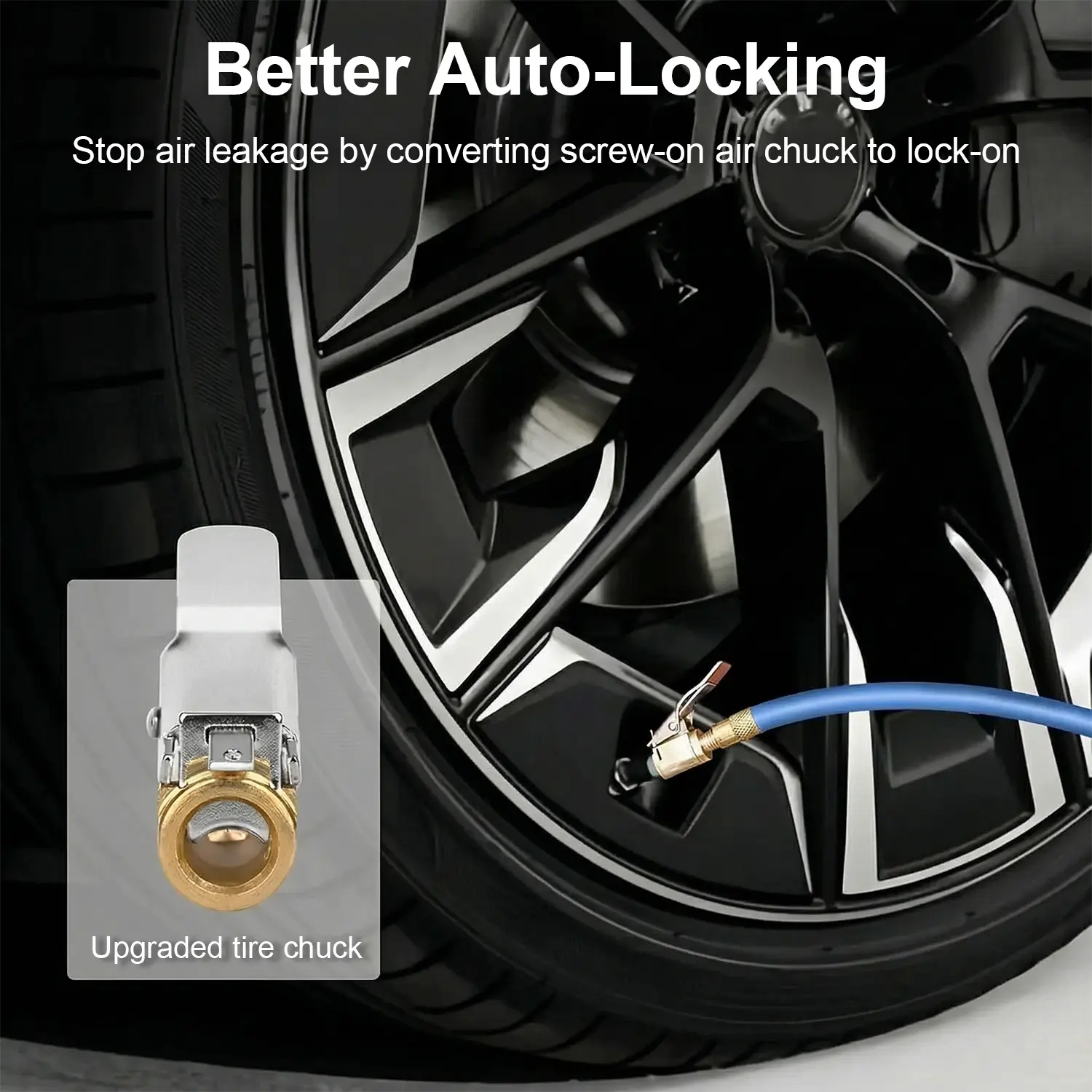 ·【Hands Free & Leakage Solver 】This premium air chuck with tire valve fine thread, was specially designed to resolve the annoying air leakage problem by converting tire inflator's screw-on (twist-on) air chuck to lock-on air chuck, just put on and lock the clamp, then start your hands free tire inflation.