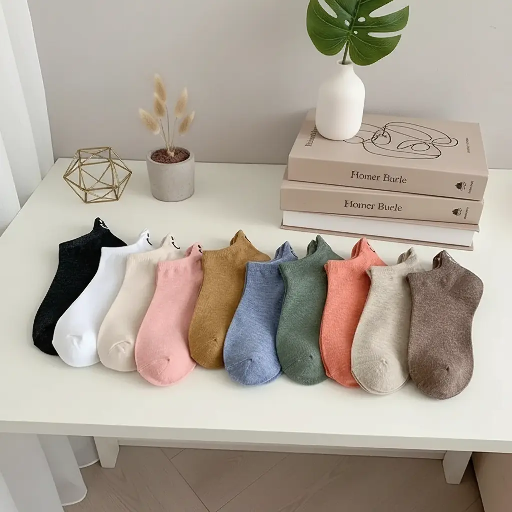 These low-top socks are ideal for everyday casual wear, making them a perfect match for any outfit. Whether you're pairing them with sneakers, flats, or sandals, they offer a chic, casual vibe while keeping your feet comfortable and cozy.