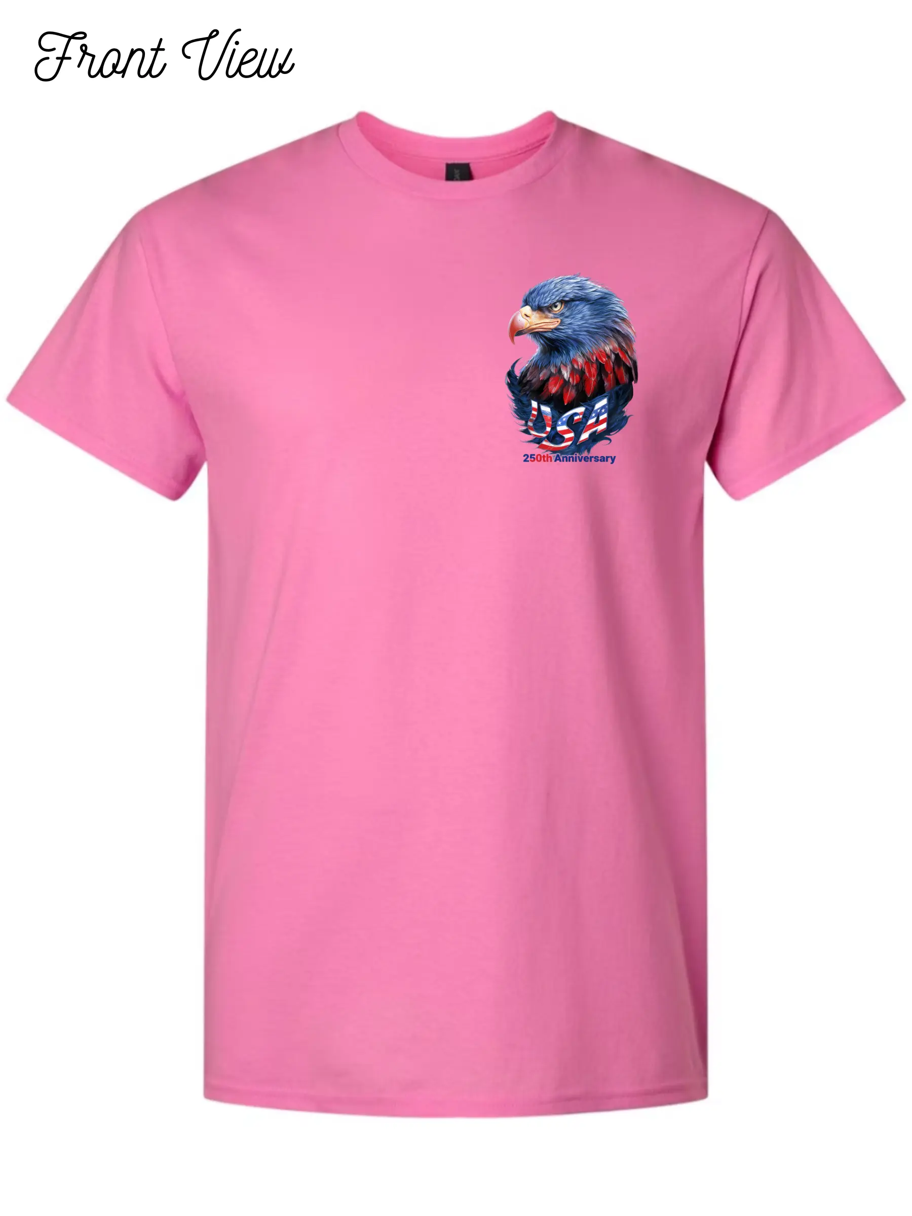 Celebrate 250 years of the good ol' U.S. of A. with this eagle-icious T-shirt! Featuring a striking eagle print and a cheeky front pocket design, it’s perfect for anyone who dreams of freedom (and maybe a few BBQs). Wear it proudly—your wardrobe will thank you!