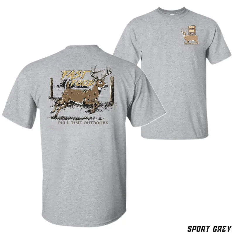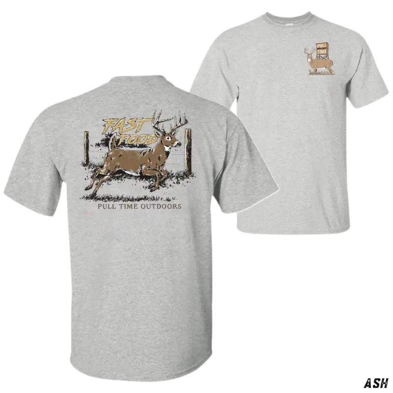 #PullTimeOutdoors #DeerHuntingTShirt #FastFoodTee #WhitetailBuckGraphic #RusticHunterStyle #CountryDeerCamp #OutdoorHuntingWear #CasualHuntTop