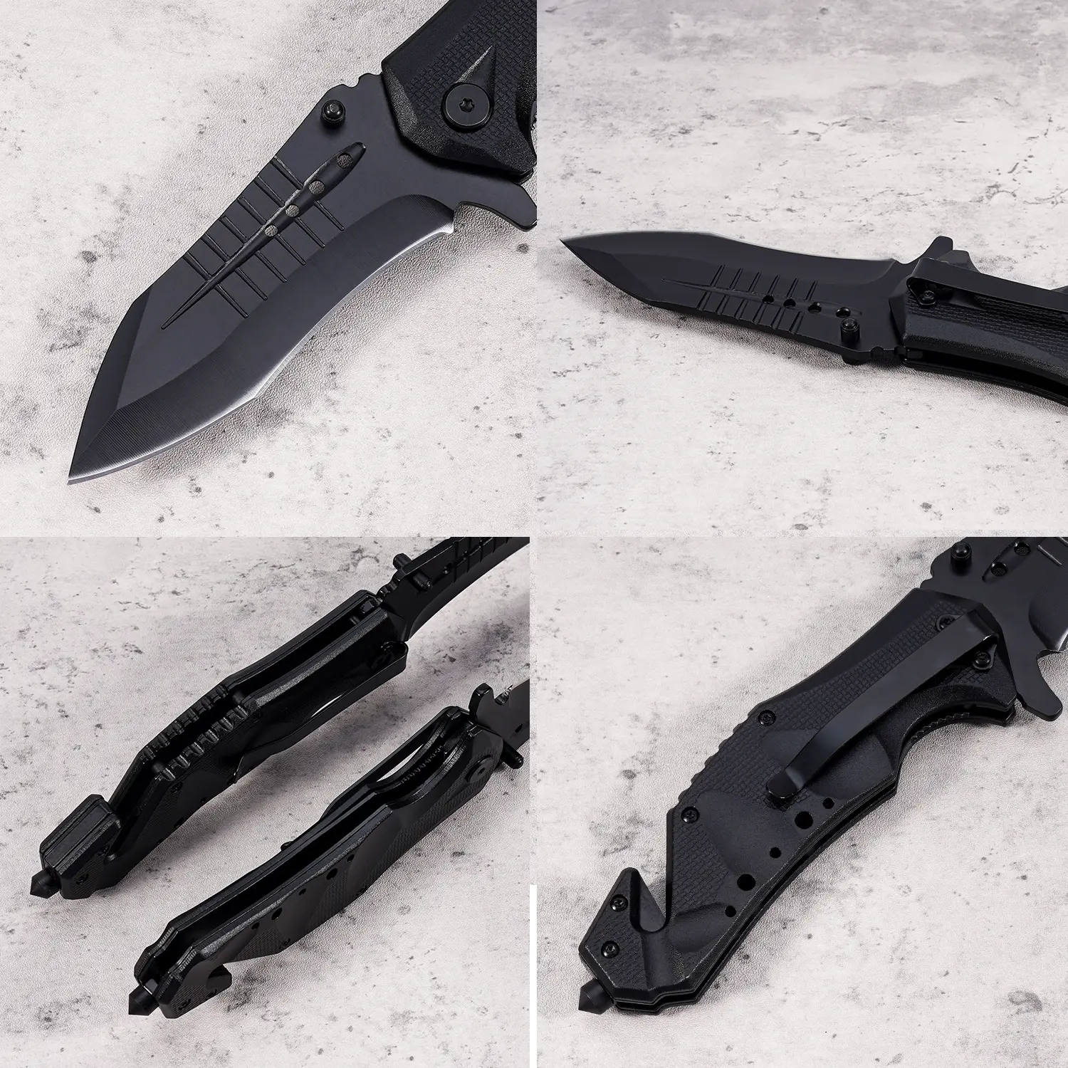 EDC multifunctional tactical outdoor folding knife with a G10 ergonomic handle; convenient pocket/belt clip for easy carry; outdoor cutting tool designed specifically for climbing and fishing; an essential item for camping and hiking.
