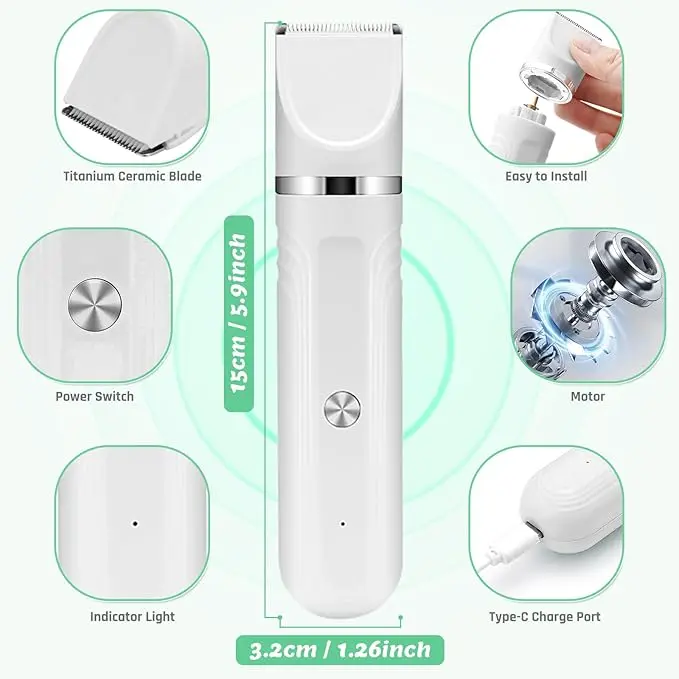 ·【Complete Trimming Tools】Our dog hair clipper include 3 trimmer heads and 1 nail grinder head that can be replaced, if you're looking for a hair clipper for grooming for dog, cat or other furry friend, then look no further, this dog nail clippers have trimming and everything needed for full body clipping and nail sharpening.
